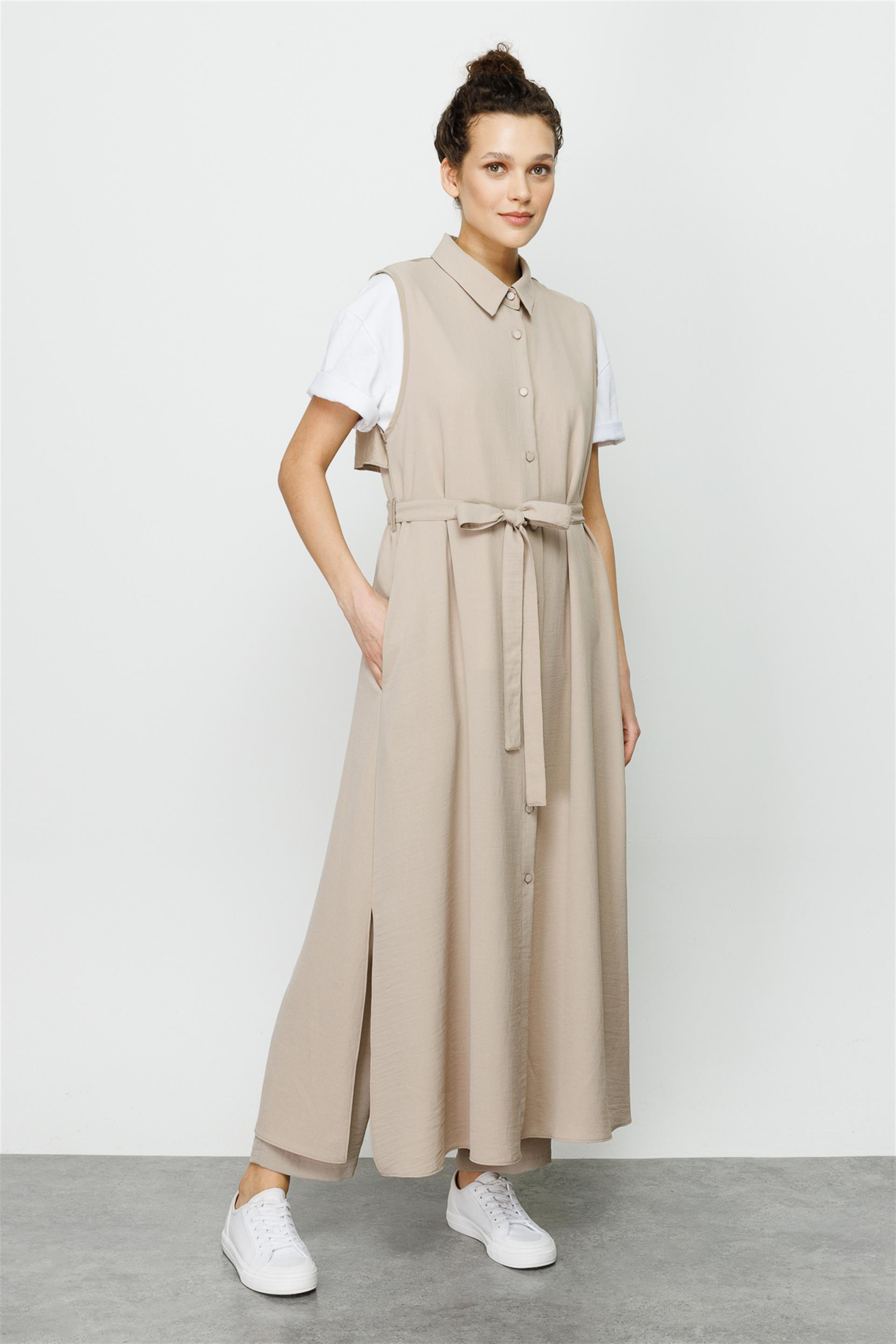 Pelerini Tafta Uzun Nefes Alan Zor Kırışan Kumaş Spor Yelek Kap-Taş (231709M PELERİN YELEKAP-12)