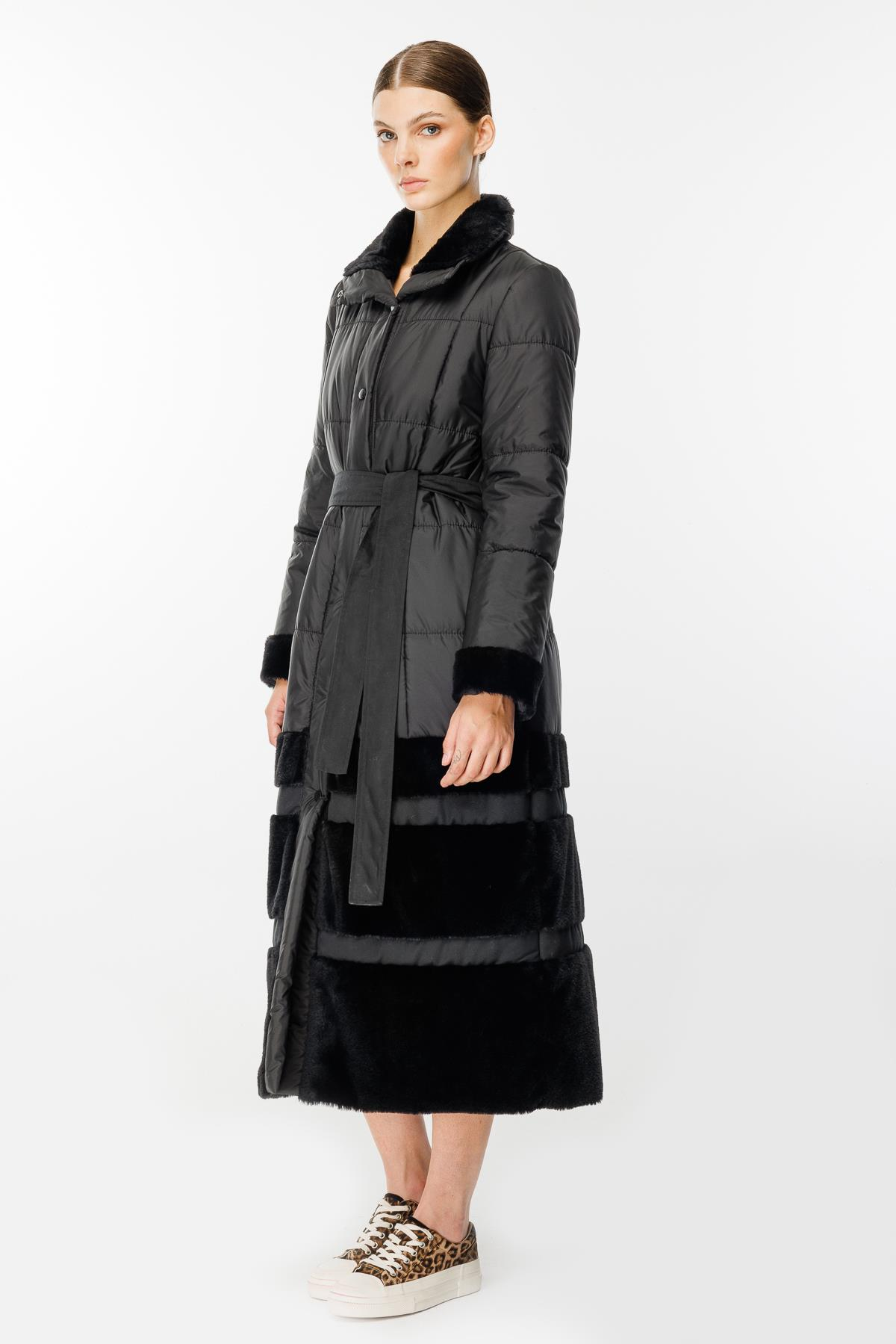 Peluş Detaylı Kapitone Dolgulu Elite Zamansız Manto Kaban-Siyah (242110N-01)