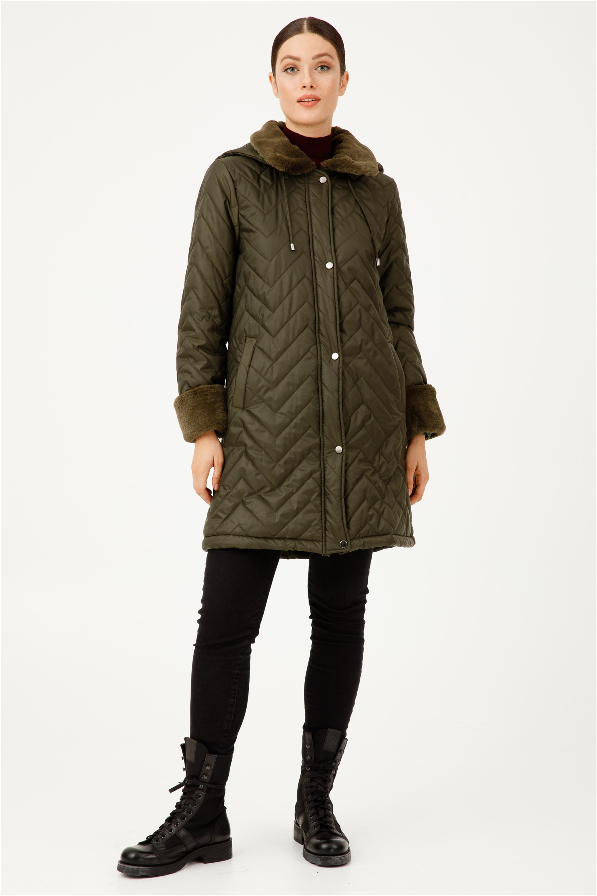 Peluş Detaylı Zikzak Desen Şişme Mont-Haki (212542M KABAN-20)