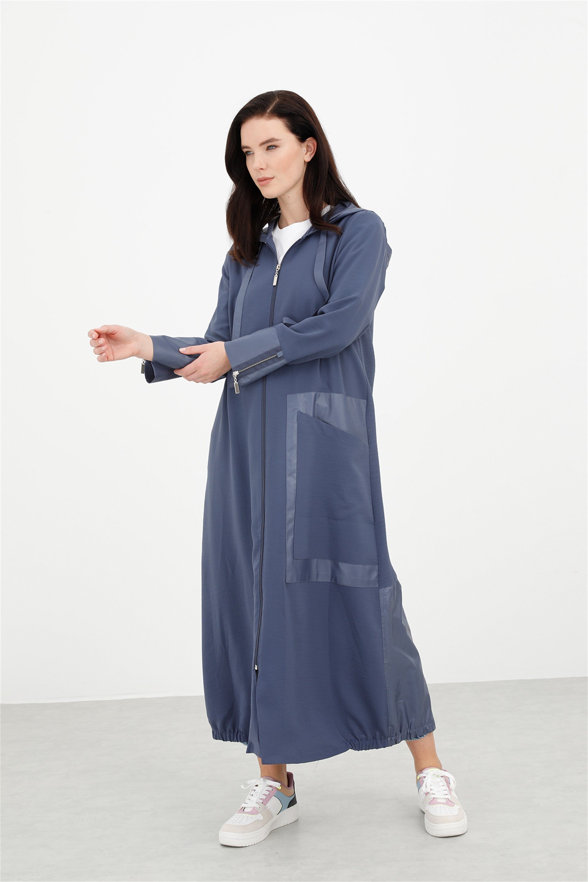 Pencere Detaylı Kapüşonlu Spor Kap-İndigo (211842M PARDESÜ-44)