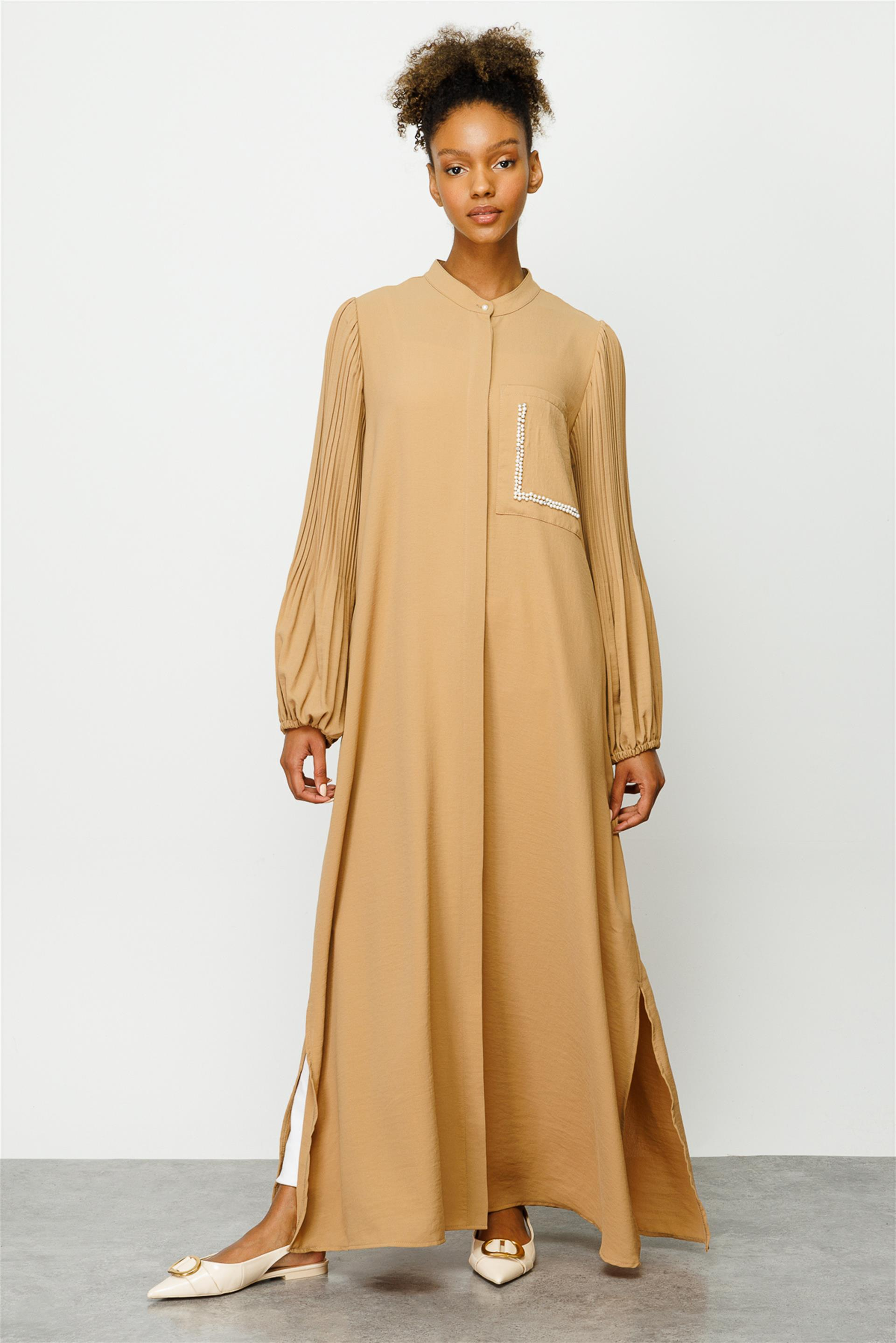 Pilise Kollu İnci Cep Detaylı Özel Kap-Camel