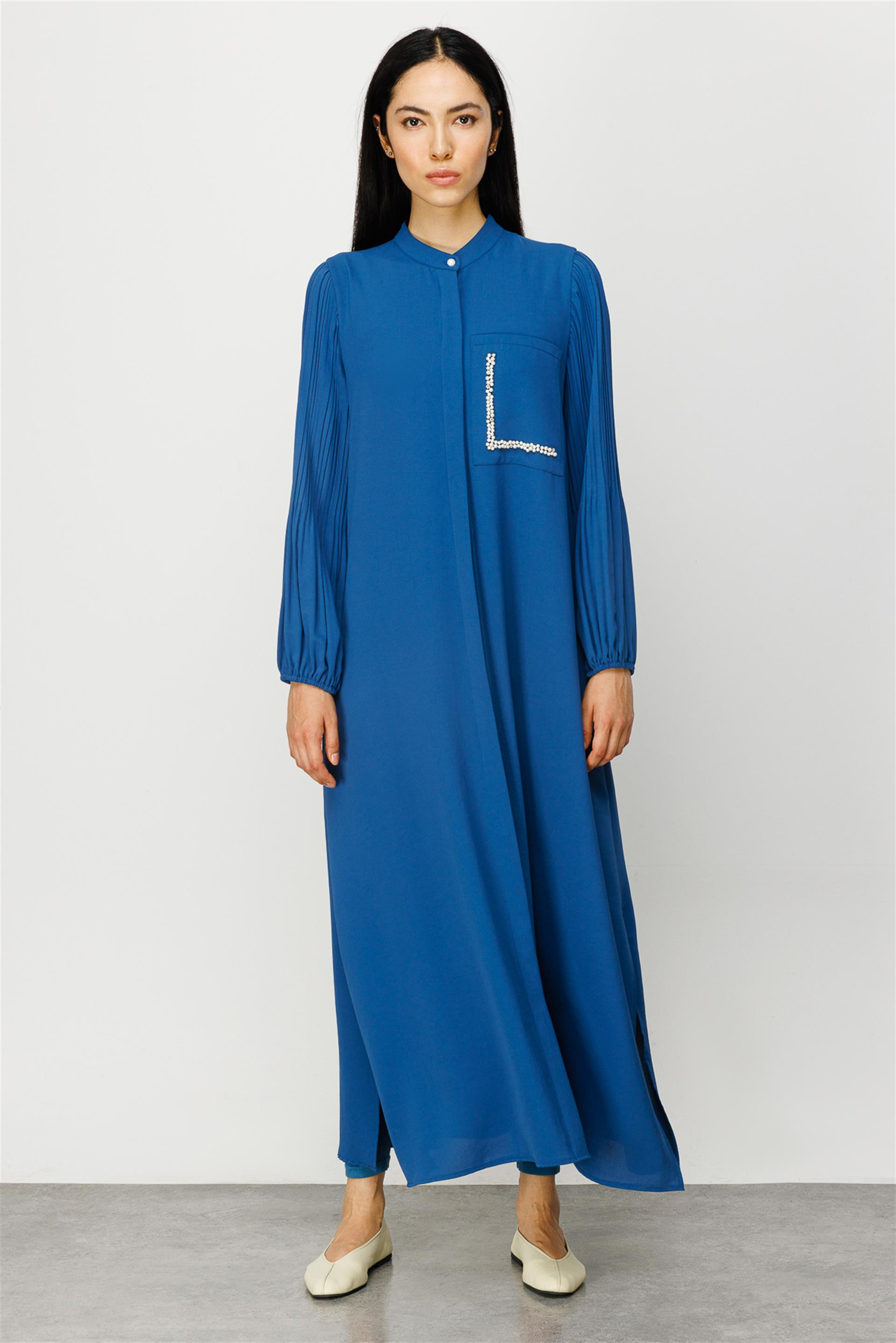 Pilise Kollu İnci Cep Detaylı Özel Kap-İndigo