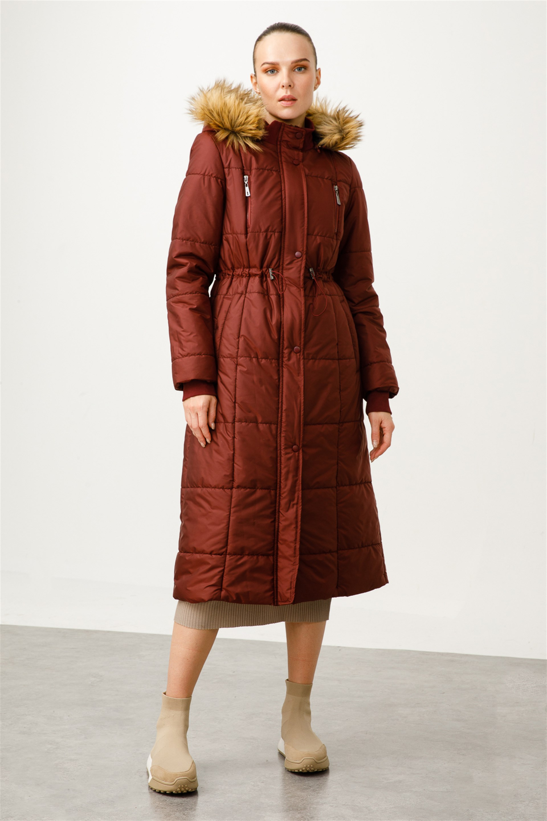 Private Şişme Kürklü Spor Manto-Bordo (222557M KABAN-05)