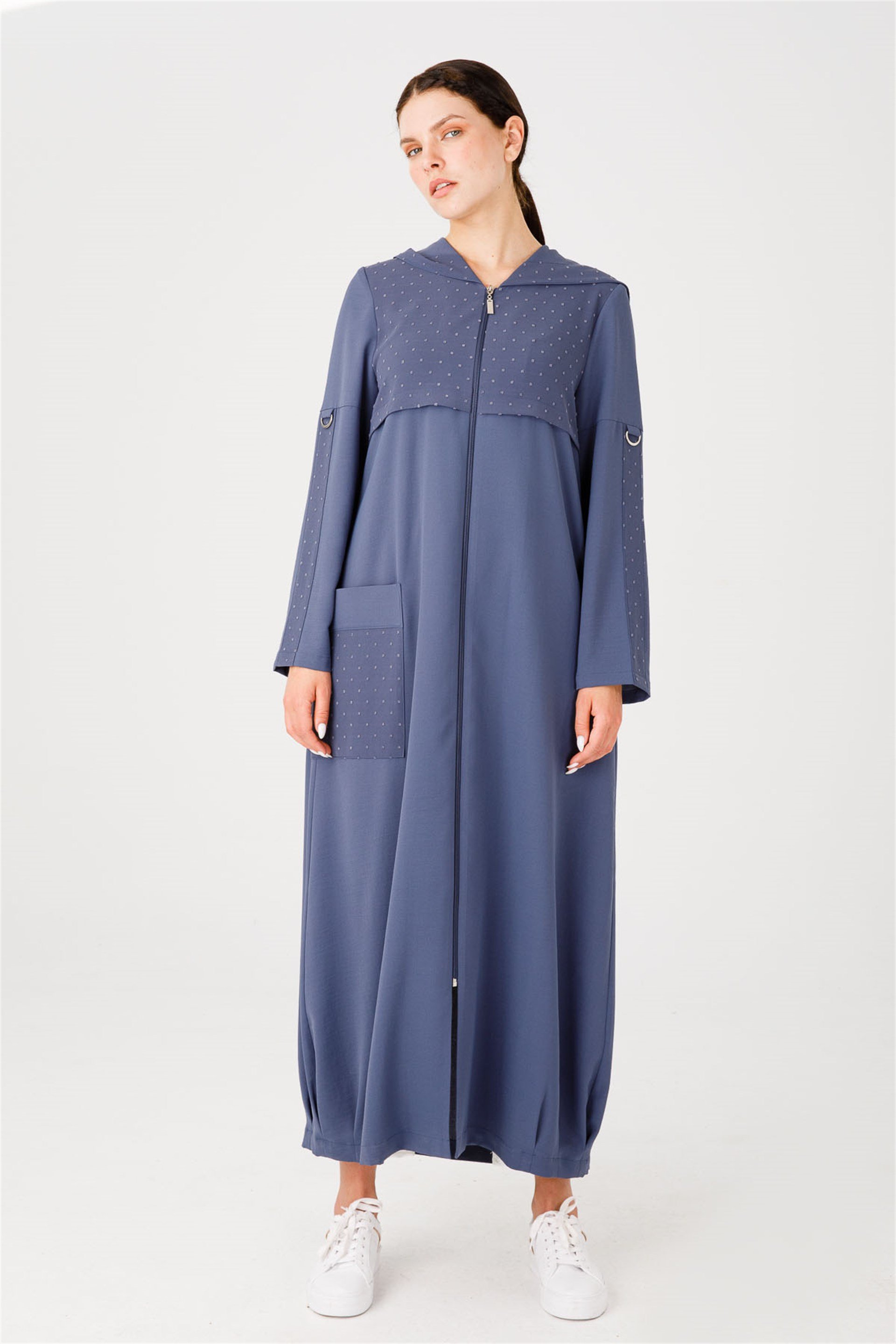 Puantiye Detaylı Tam Boy Kap-İndigo