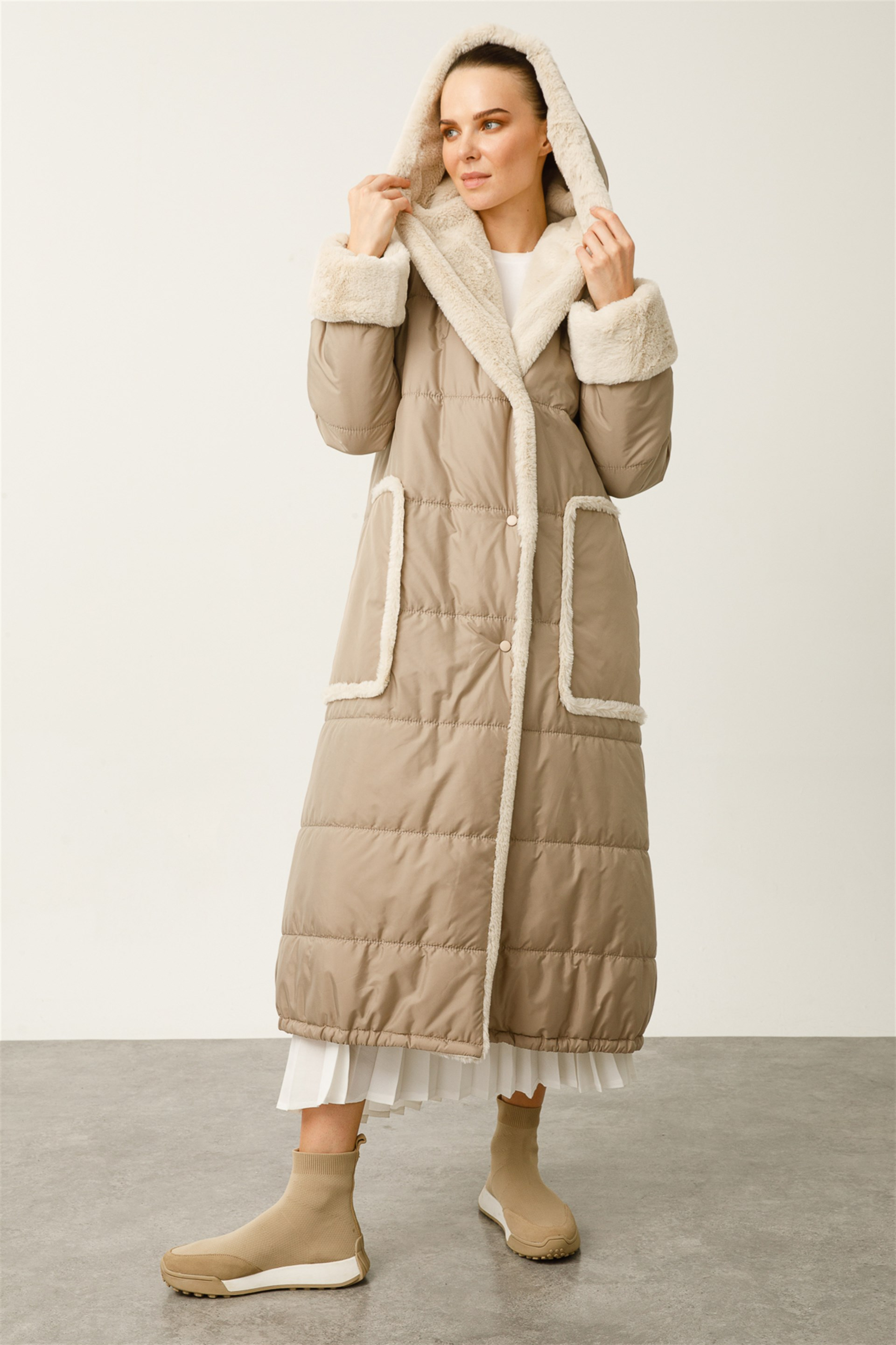 Puff Peluş Detaylı Kapitone Spor Manto-Taş (222556M KABAN-12)