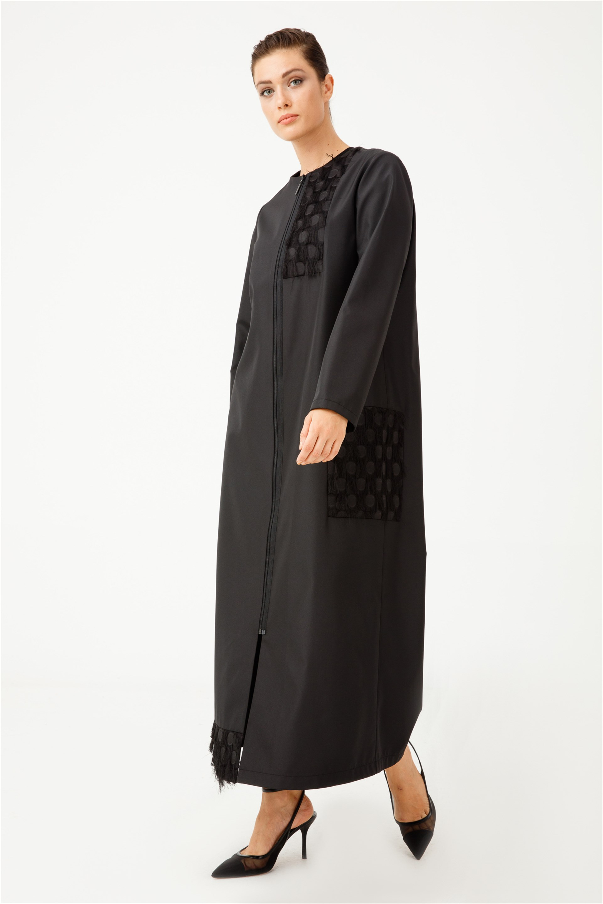 Püskül Detaylı Pardesü-Siyah (202575M PARDESÜ-01)