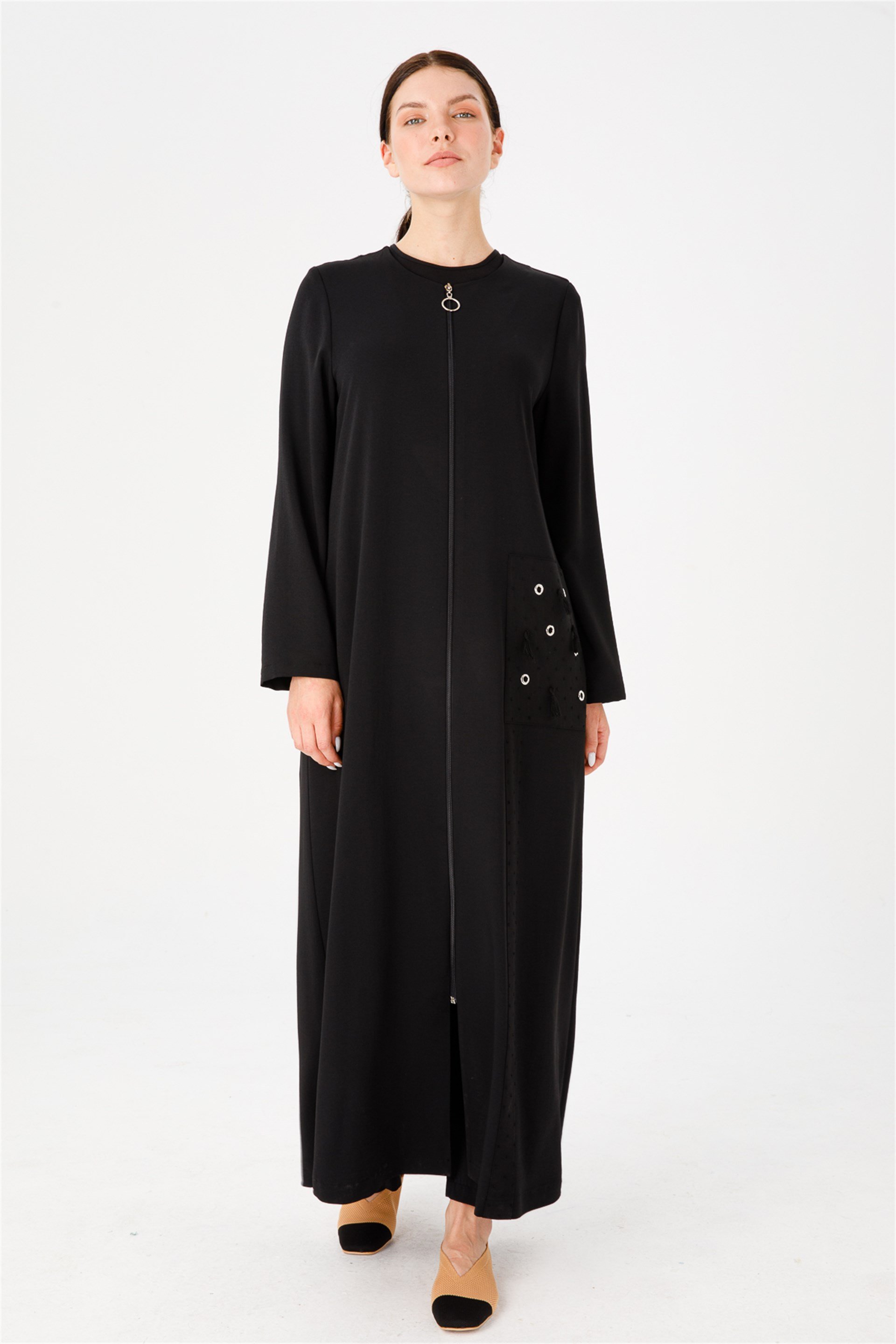 Püskül ve Garni Kumaş Detaylı Ferace Kap-Siyah (211801M PARDESÜ-01)