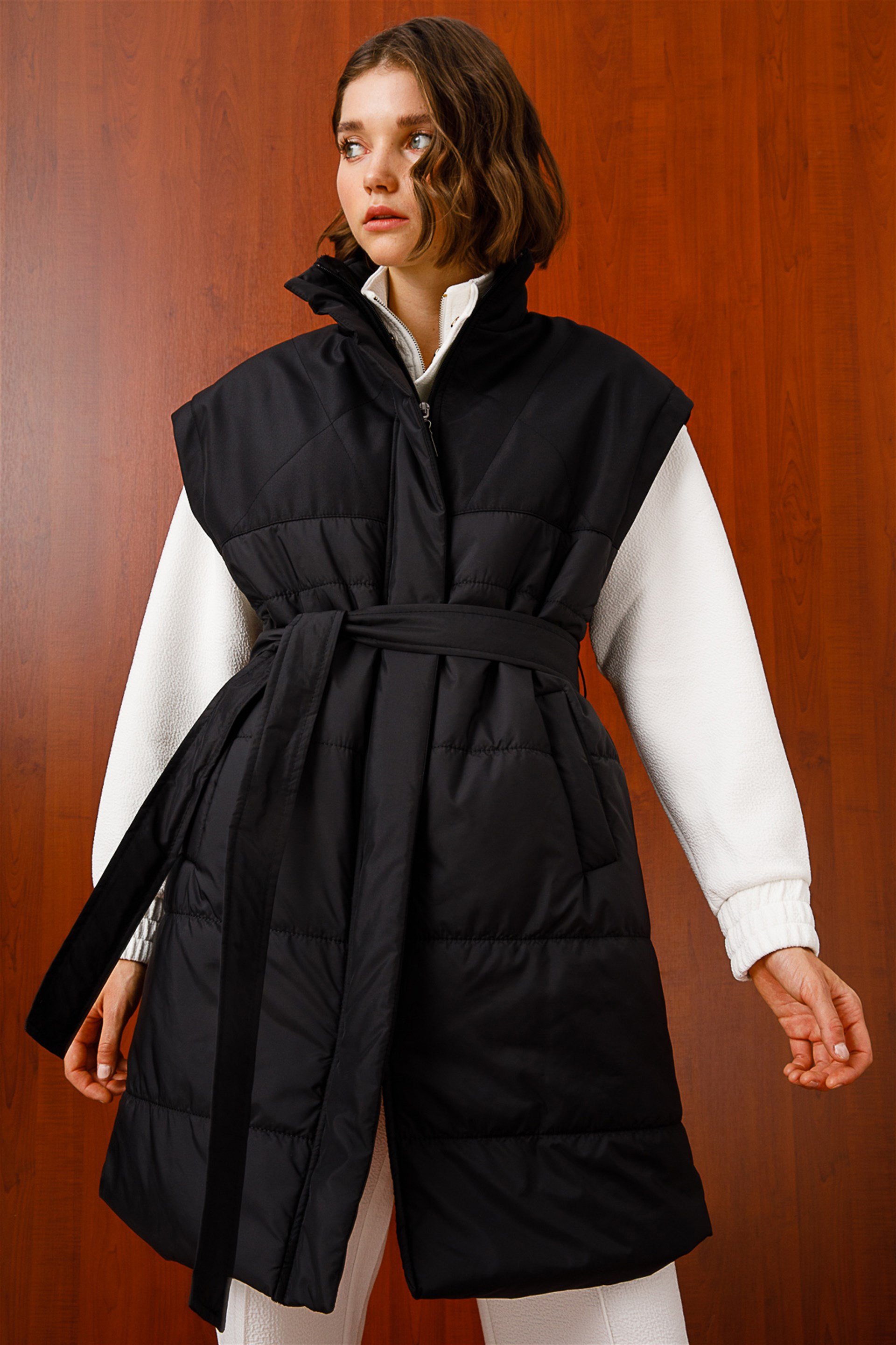 Rahat Kesim garni Kumaşlı Kapitone Şişme Yelek-Siyah (212720M YELEK-01)