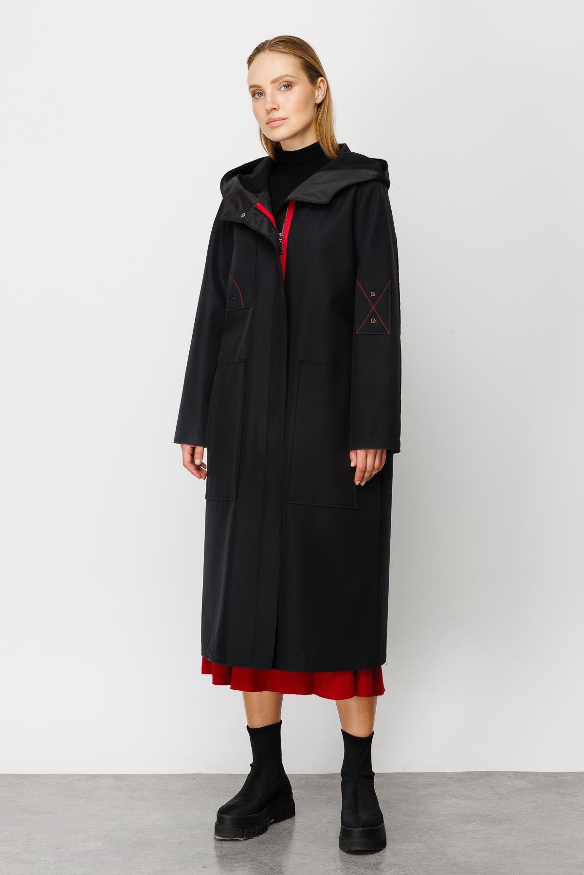 Rosso Detayları ile Tüm Bedeni Polar Kaplı Spor Kaban Manto-Siyah