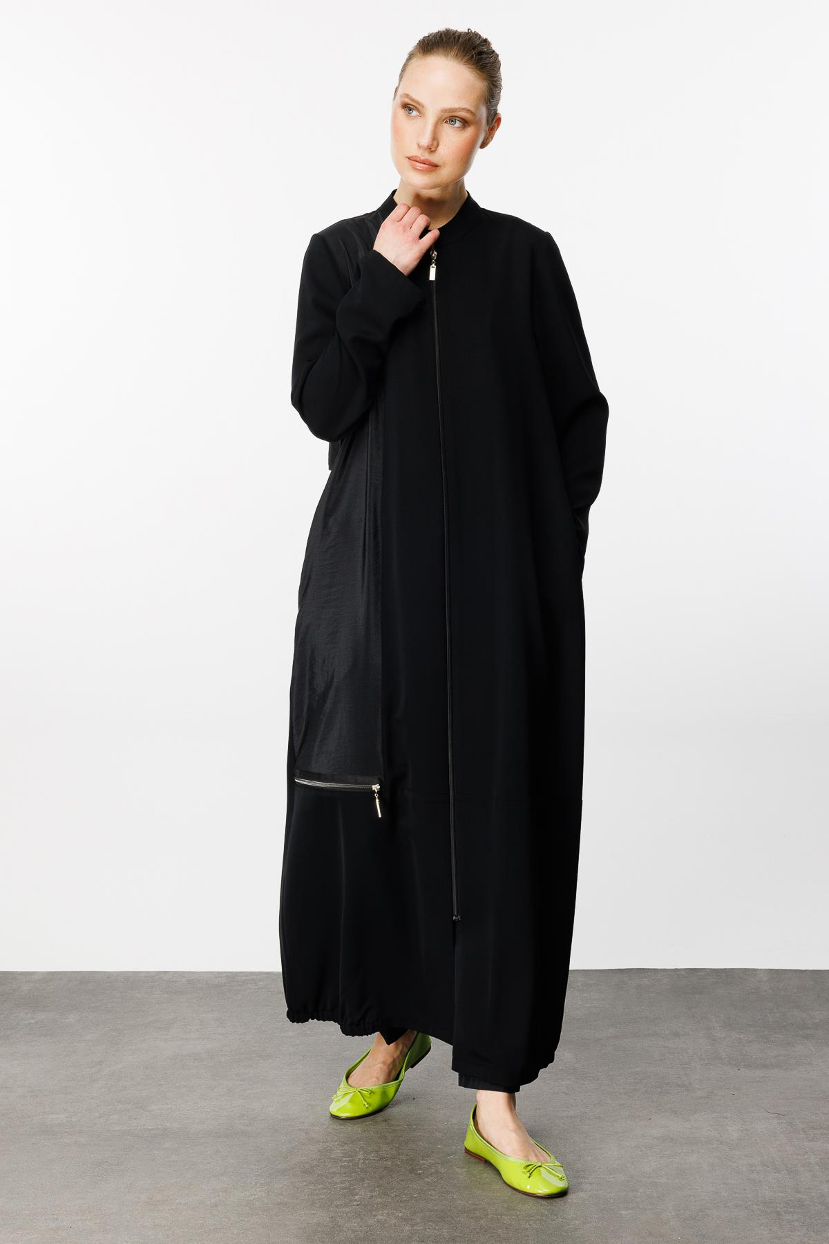ROZE Ön ve Sırt Garni Detaylı Spor Zor Kırışan Nefes Alan Özel Dokuma Kumaş Kap-Siyah (241531M FERACE-01)