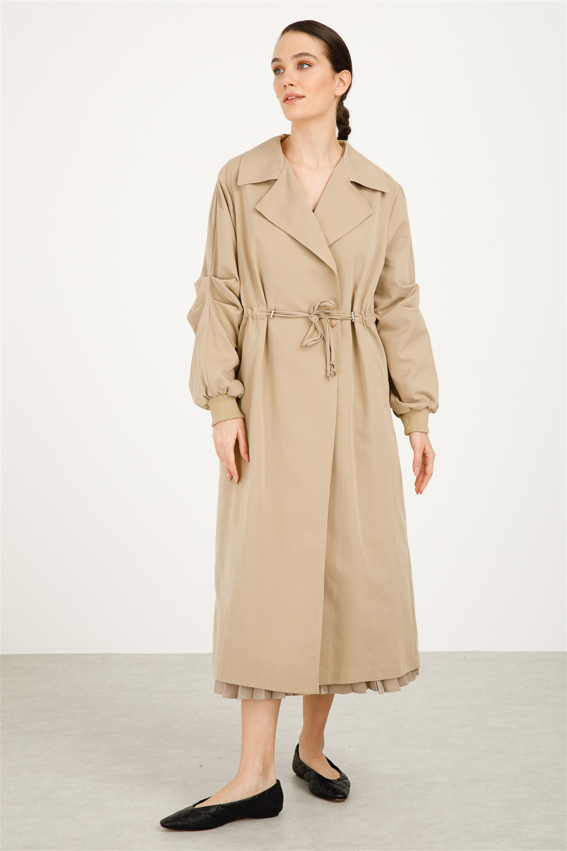 Rüzgar Geçirmez ve Su Tutmaz Fonksiyonel Hafif Pamuklu Kumaştan Trençkot-Camel (211590M TREÇKOT-08)