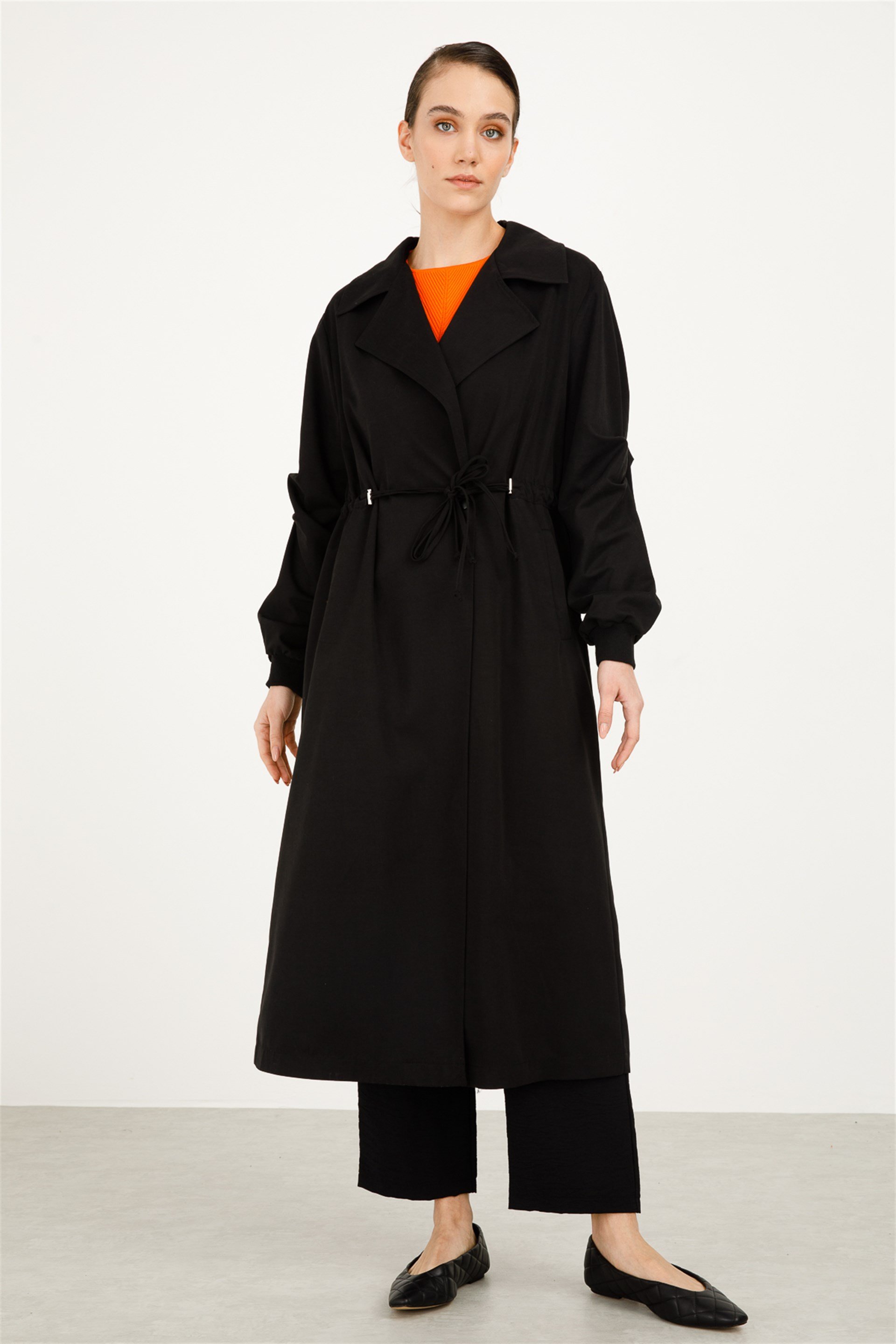Rüzgar Geçirmez ve Su Tutmaz Fonksiyonel Hafif Pamuklu Kumaştan Trençkot-Siyah (211590M TREÇKOT-01)