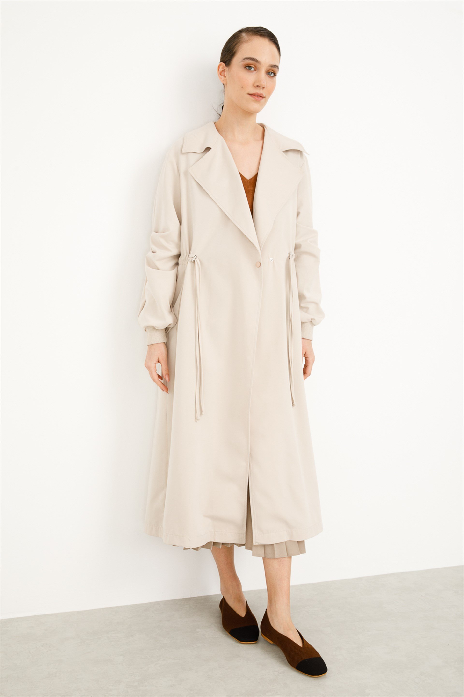 Rüzgar Geçirmez ve Su Tutmaz Fonksiyonel Hafif Pamuklu Kumaştan Trençkot-Taş (211590M TREÇKOT-12)