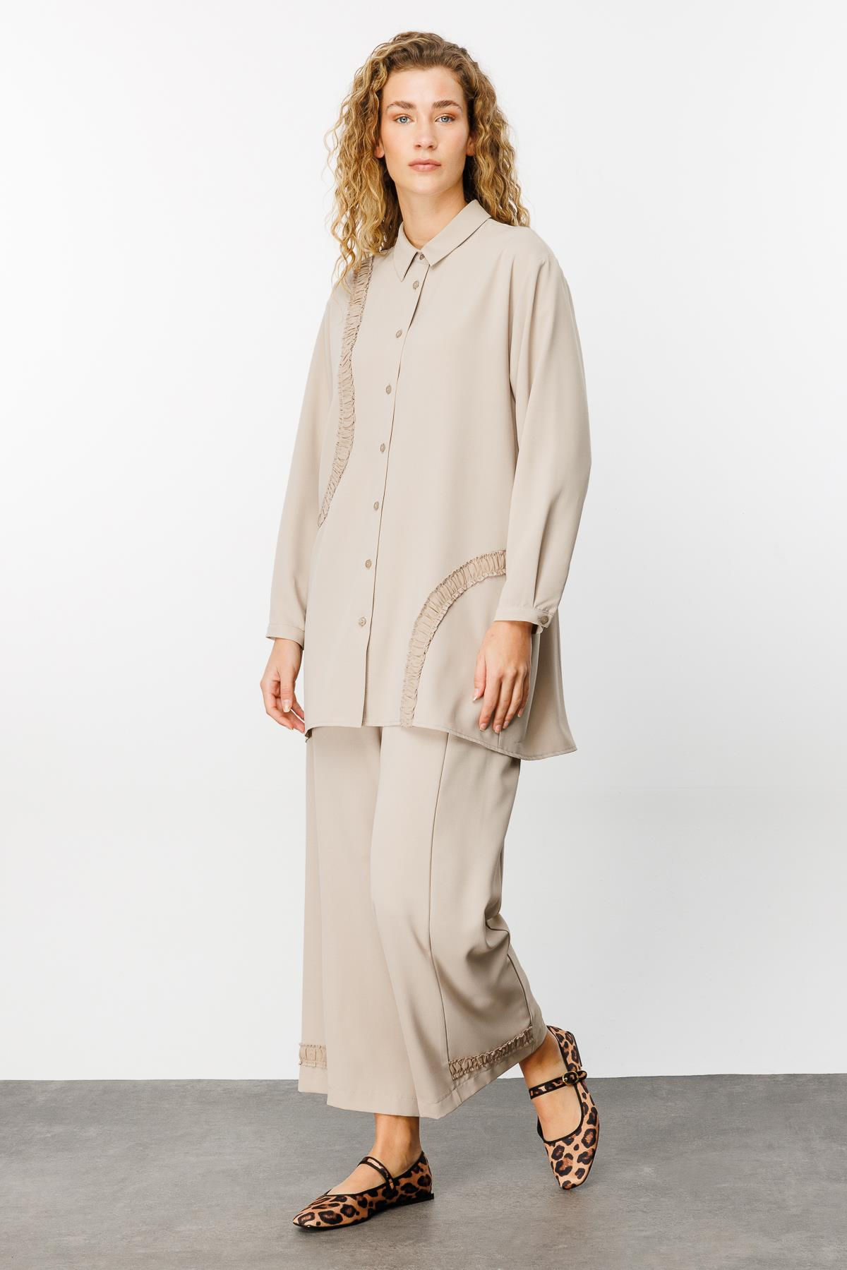 S Şifon Garni Tunik / Pantalon Özel Dokuma Zor Kırışan Nefes Alan Takım-Taş (241881M TAKIM-12)