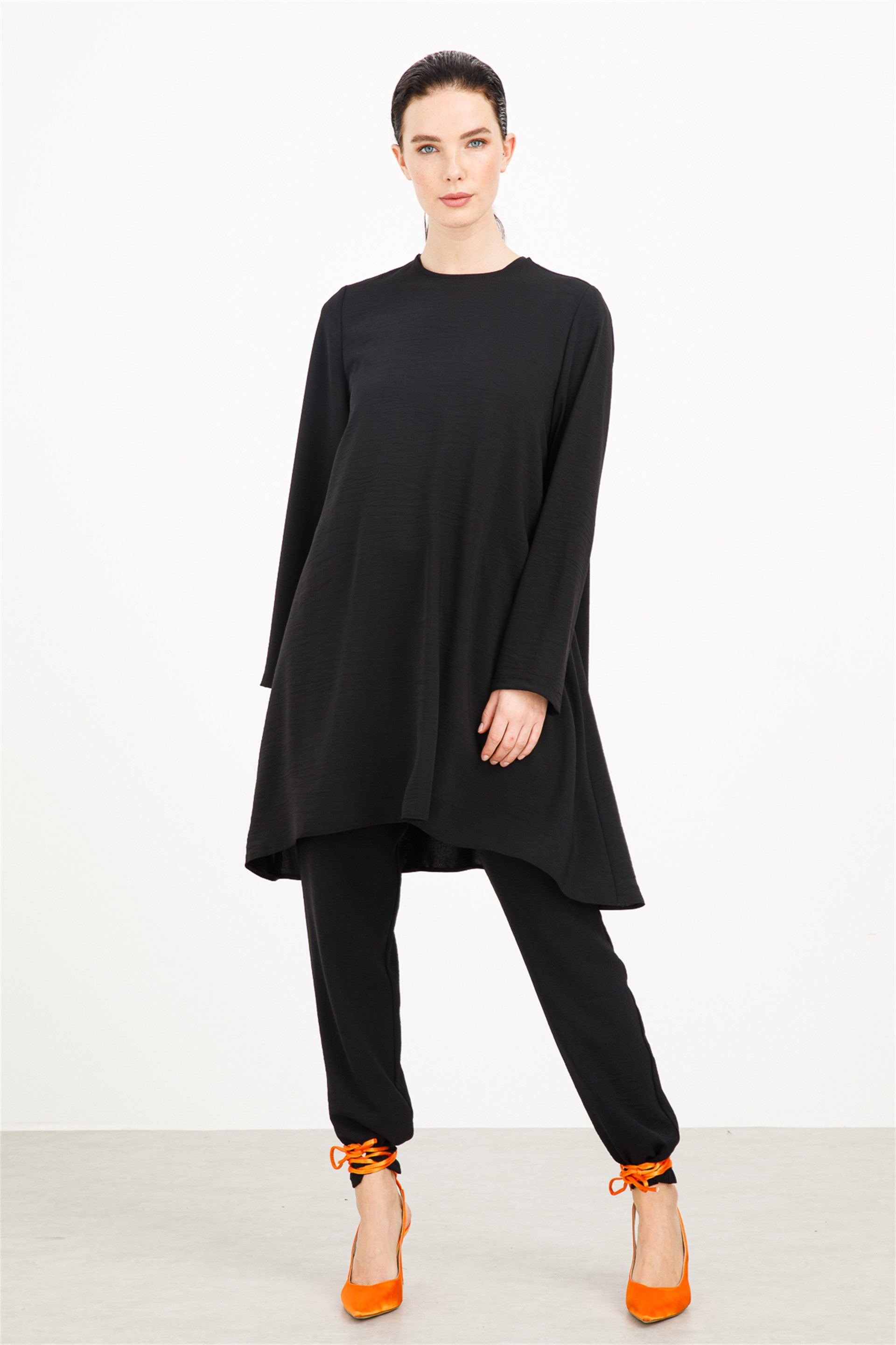 Sade ve Şık Çok Amaçlı Basic Spor Boy Tunik-Siyah