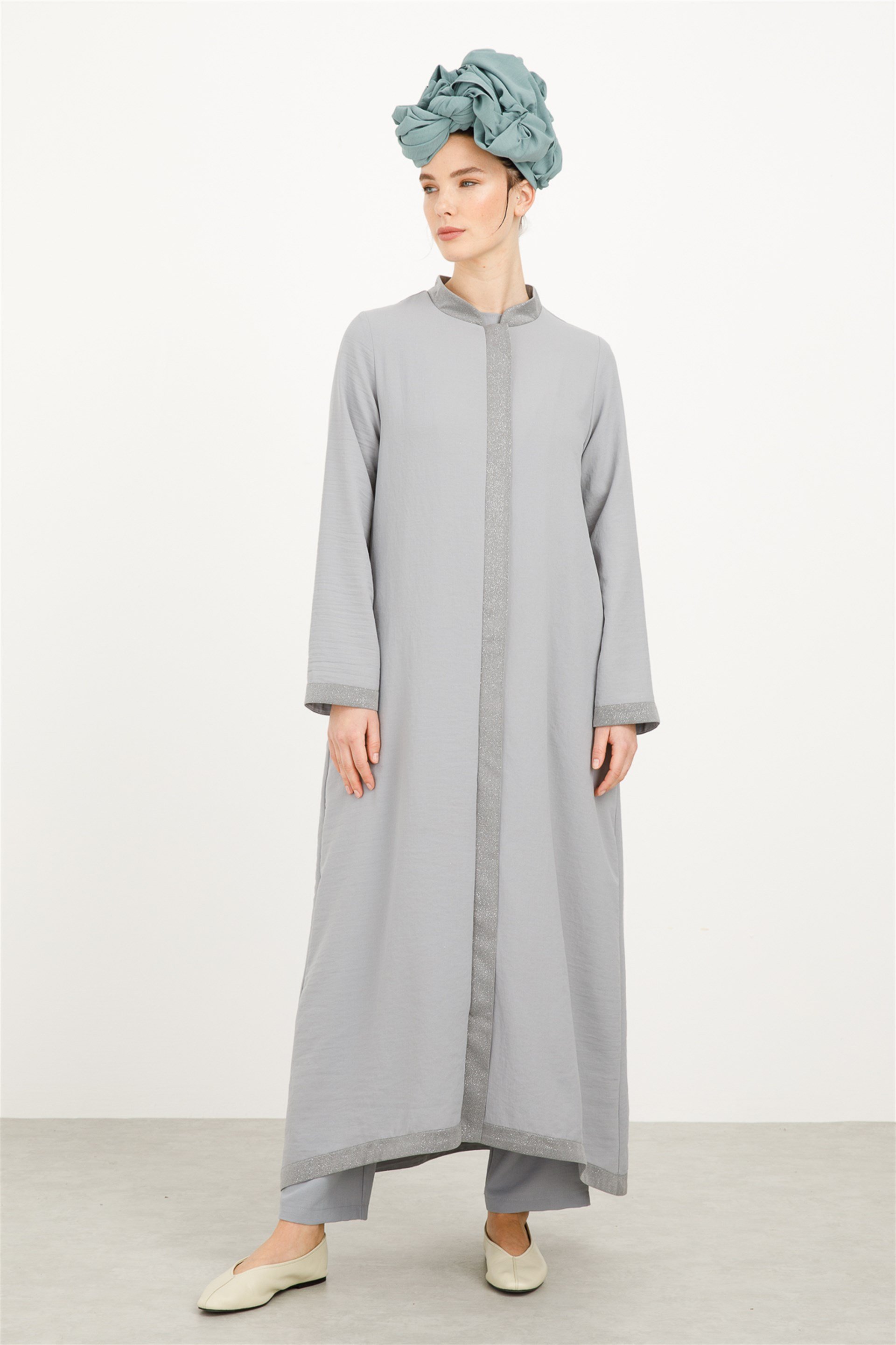 Sade ve Şık, Gündelik ve Özel Günleriniz İçin Simli Tam Boy Kap-Gri