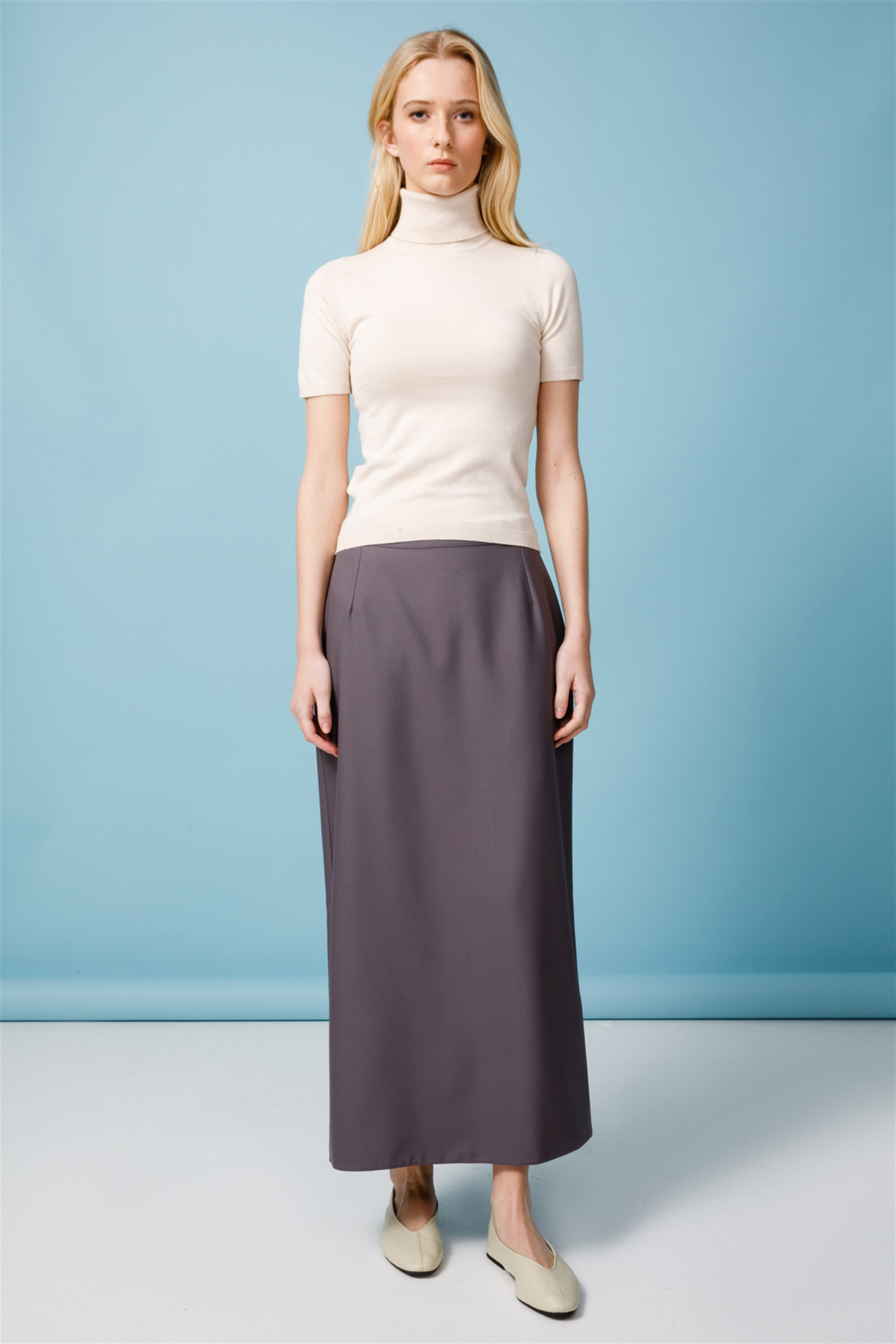 Sade Zamansız Arkası Pilikaşe Zor Kırışan Kumaş Tam Boy Etek-Gri