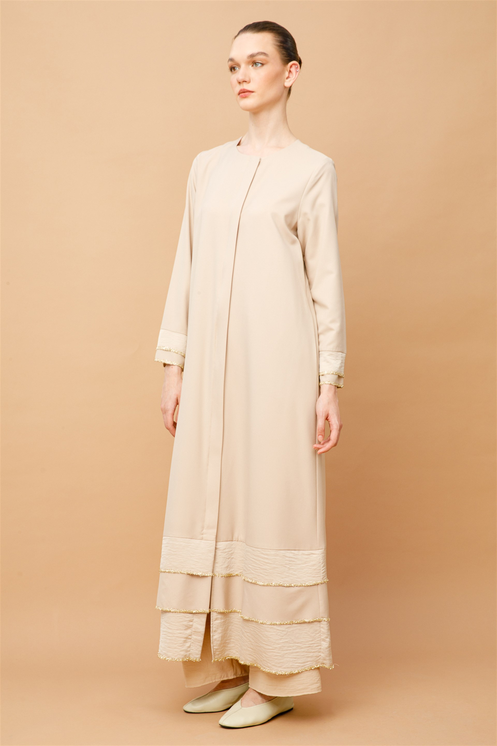 Sade Zamansız ve Zor Kırışan Hafif Dökümlü Kumaştan Kap Ferace-Taş (221844M PARDESÜ-12)