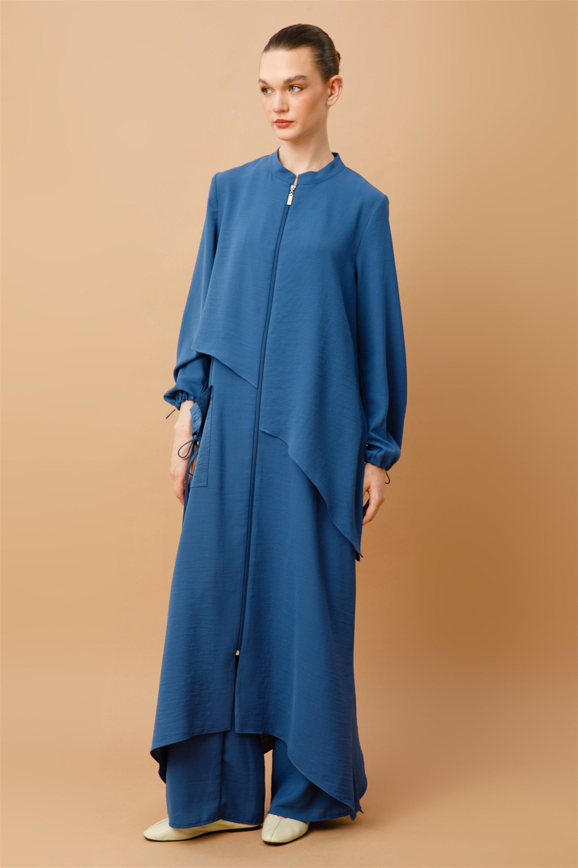 Saten Cep Detaylı Dökümlü Zor Kırışan Kumaştan Spor Kap-İndigo (221802M PARDESÜ-44)