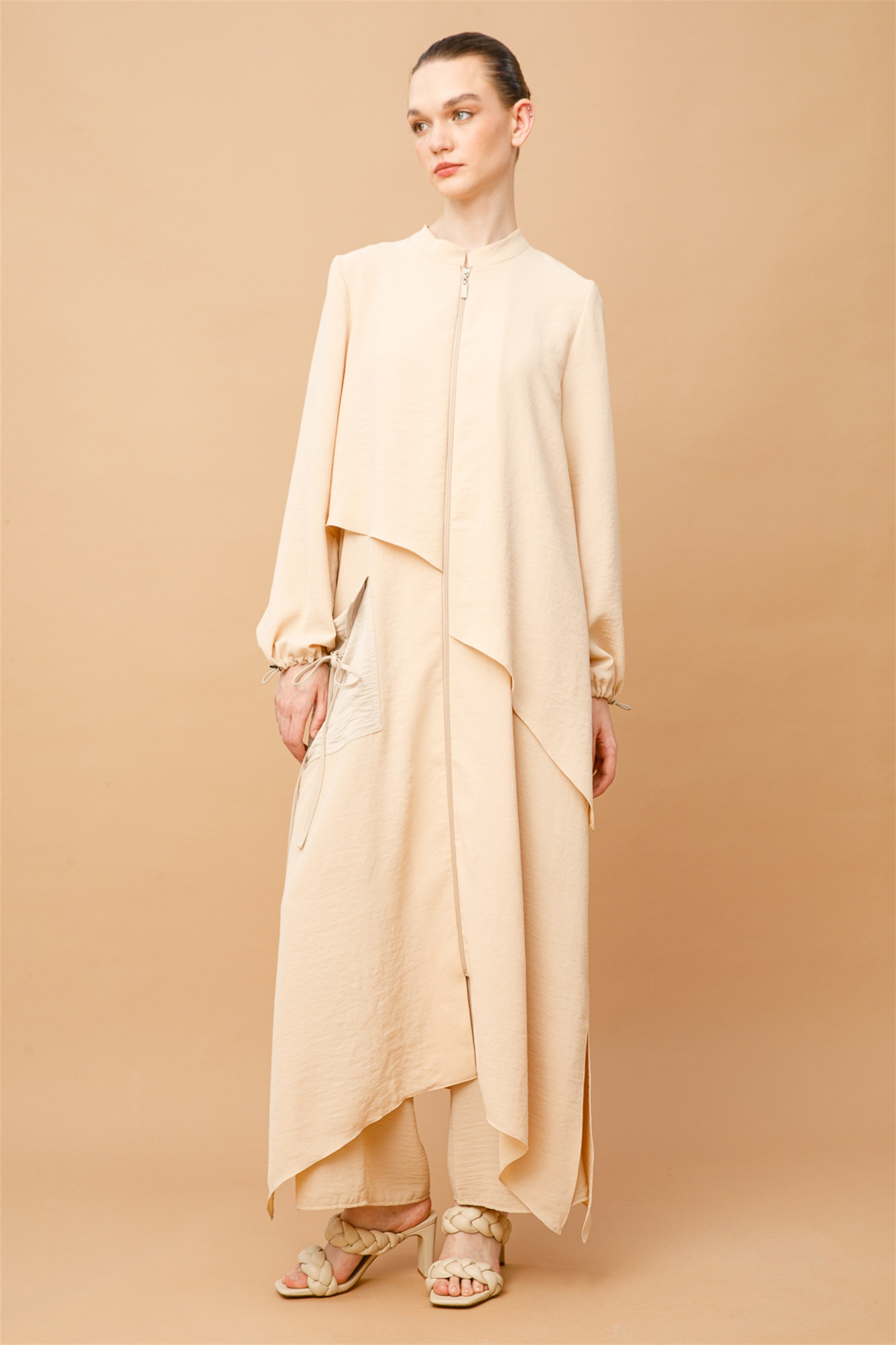Saten Cep Detaylı Dökümlü Zor Kırışan Kumaştan Spor Kap-Taş (221802M PARDESÜ-12)