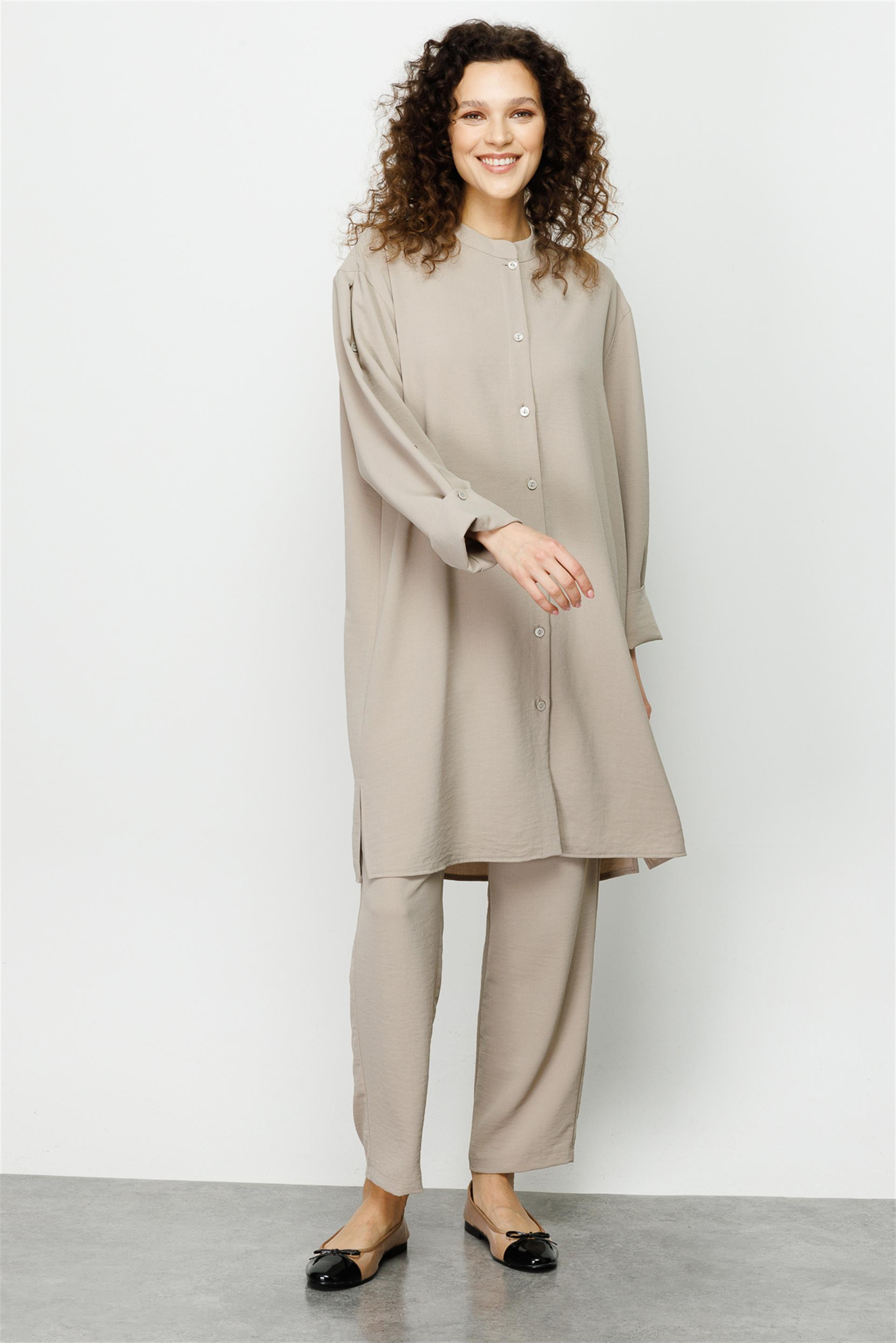 Sedef Düğme Detaylı Zor Kırışan Nefes Alan Kumaştan Basen Örten Takım-Taş (231803M SEDEFLİ TAKIM-12)