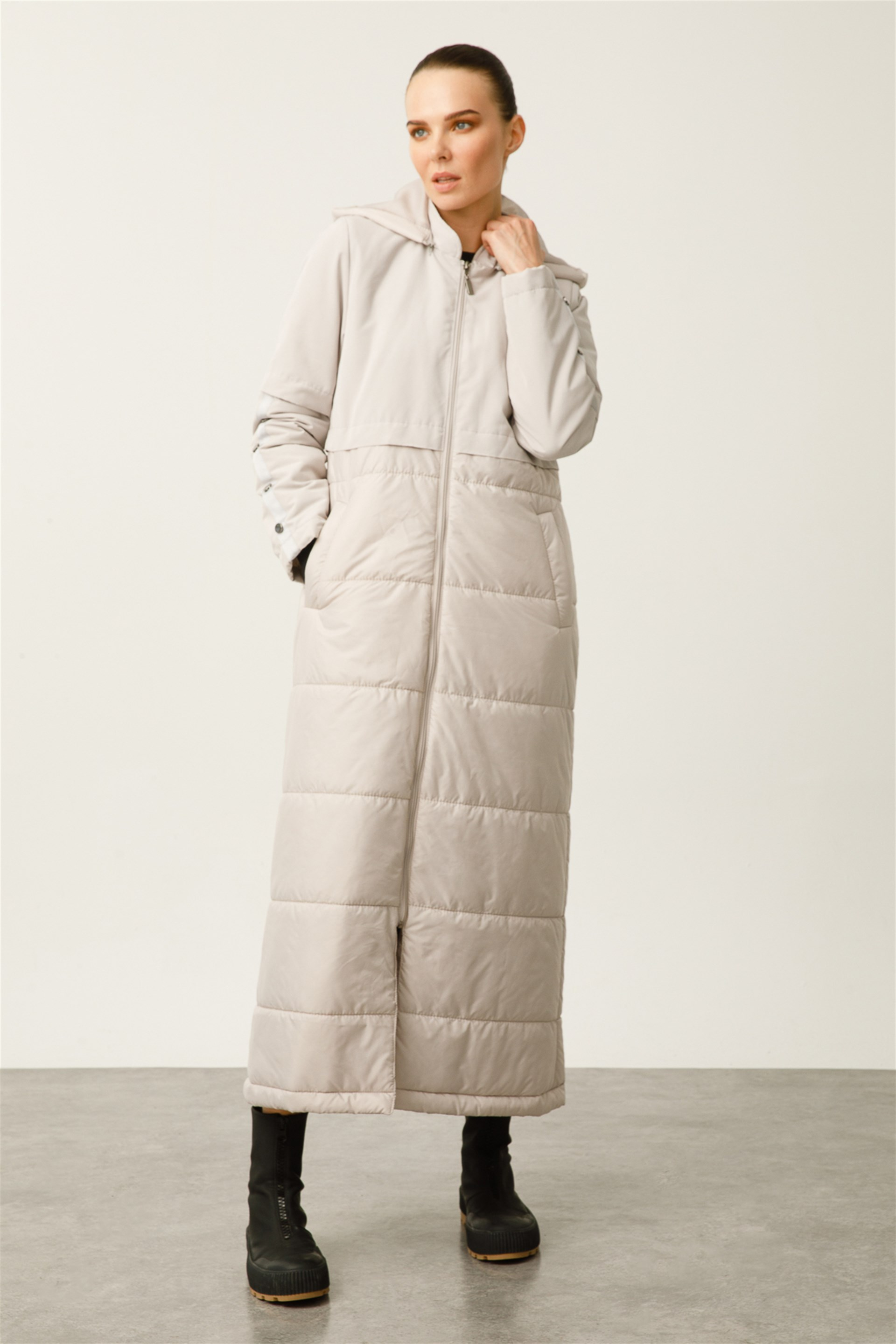She Helene Üst Beden Kapitone Kaplı Spor Manto-Gümüş (222571M KABAN-79)