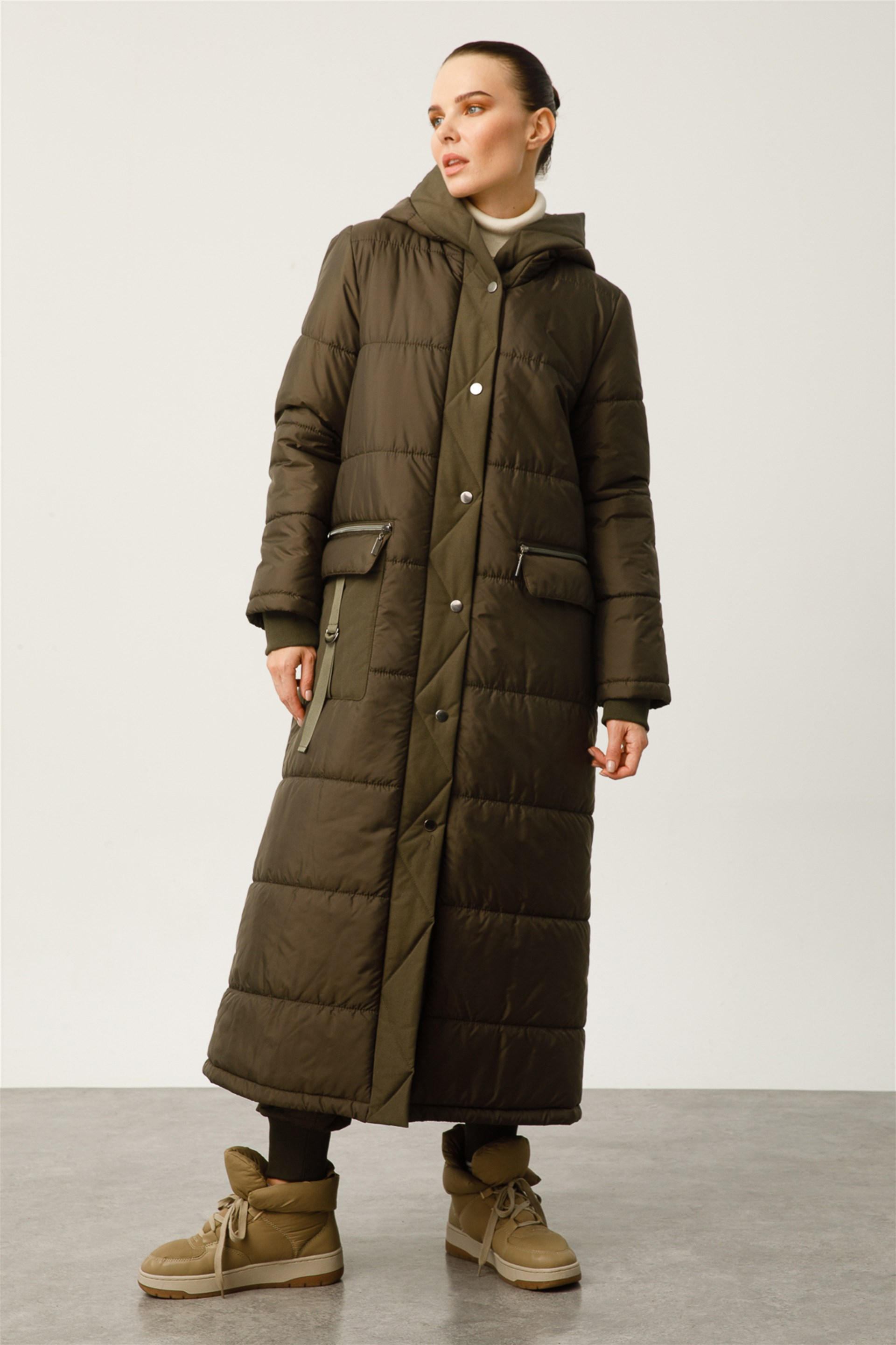 Şişme Elyaf Dolgulu Helene Garnili Spor Detaylı Manto-Haki (222523M KABAN-20)