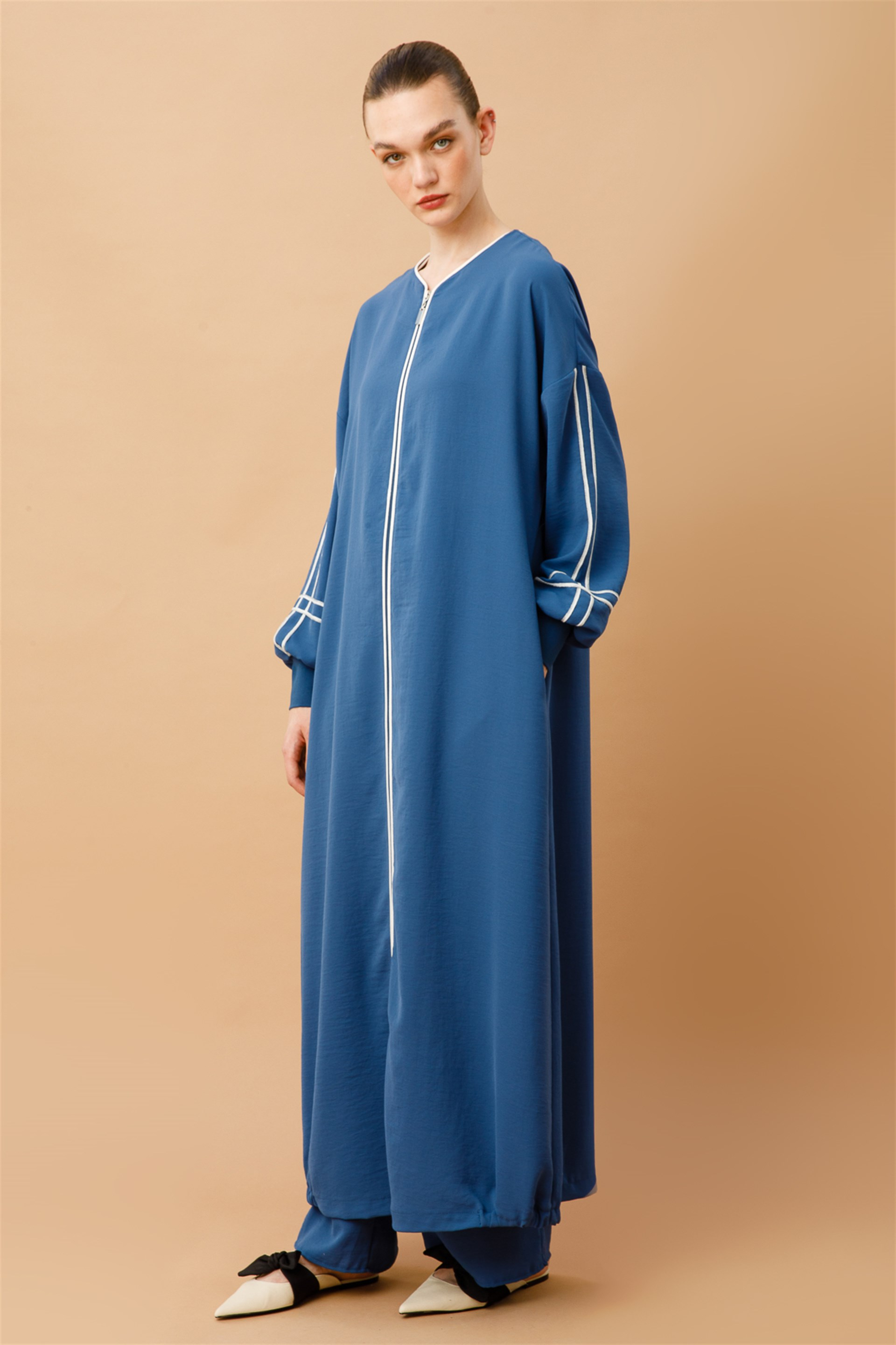 Siyah Beyaz Garni Detaylı Spor Tam Boy Kap Ferace-İndigo (221571M PARDESÜ-44)