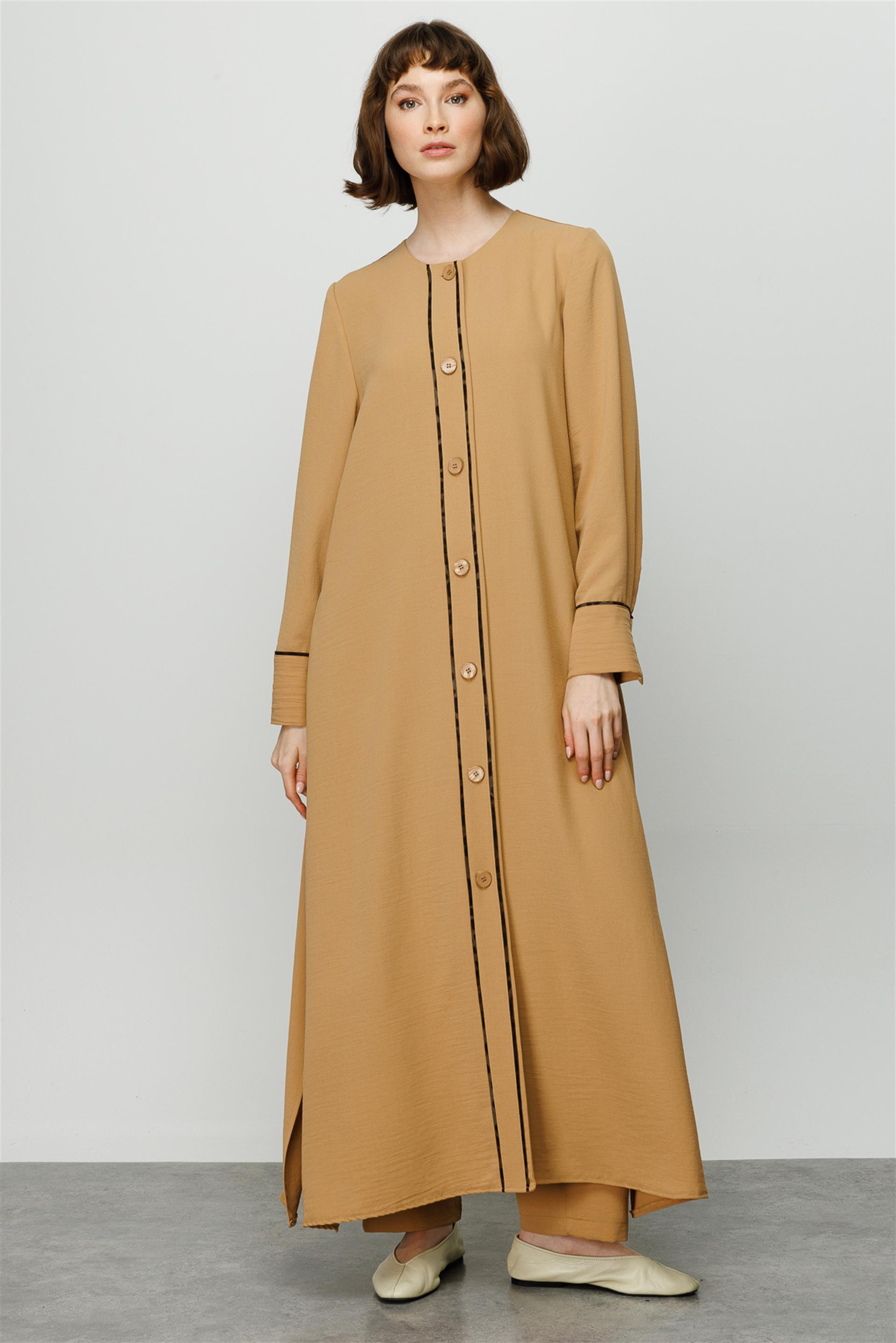 Soft Leo Garni Detaylı Zor Kırışan Nefes Alan Kumaş Kap-Camel (231582M LEO KAP-08)