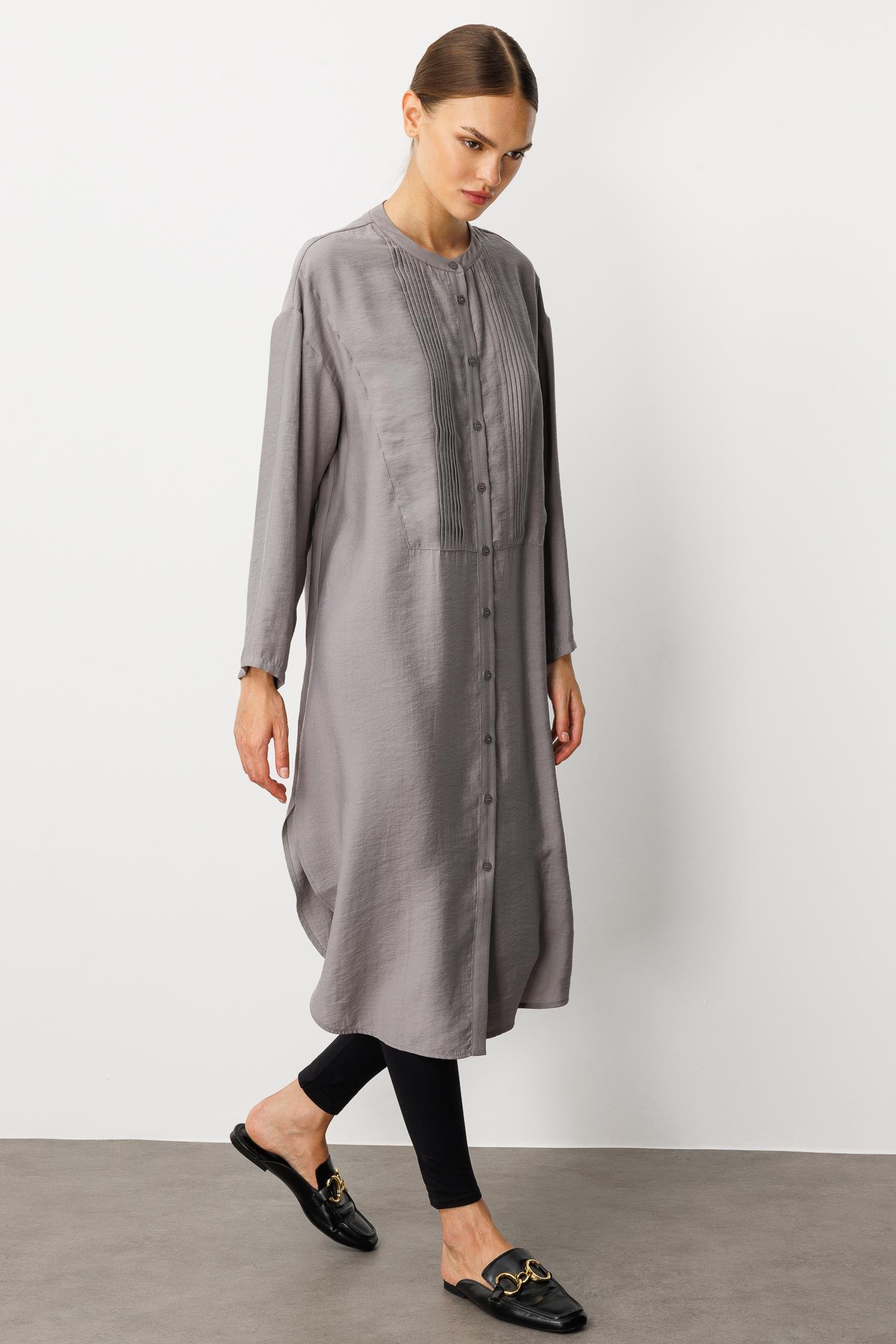 Soft Modal (%90) İçerikli Pili Kırımlı Detay Kap Ferace-Gri (252540M TUNİK-18)