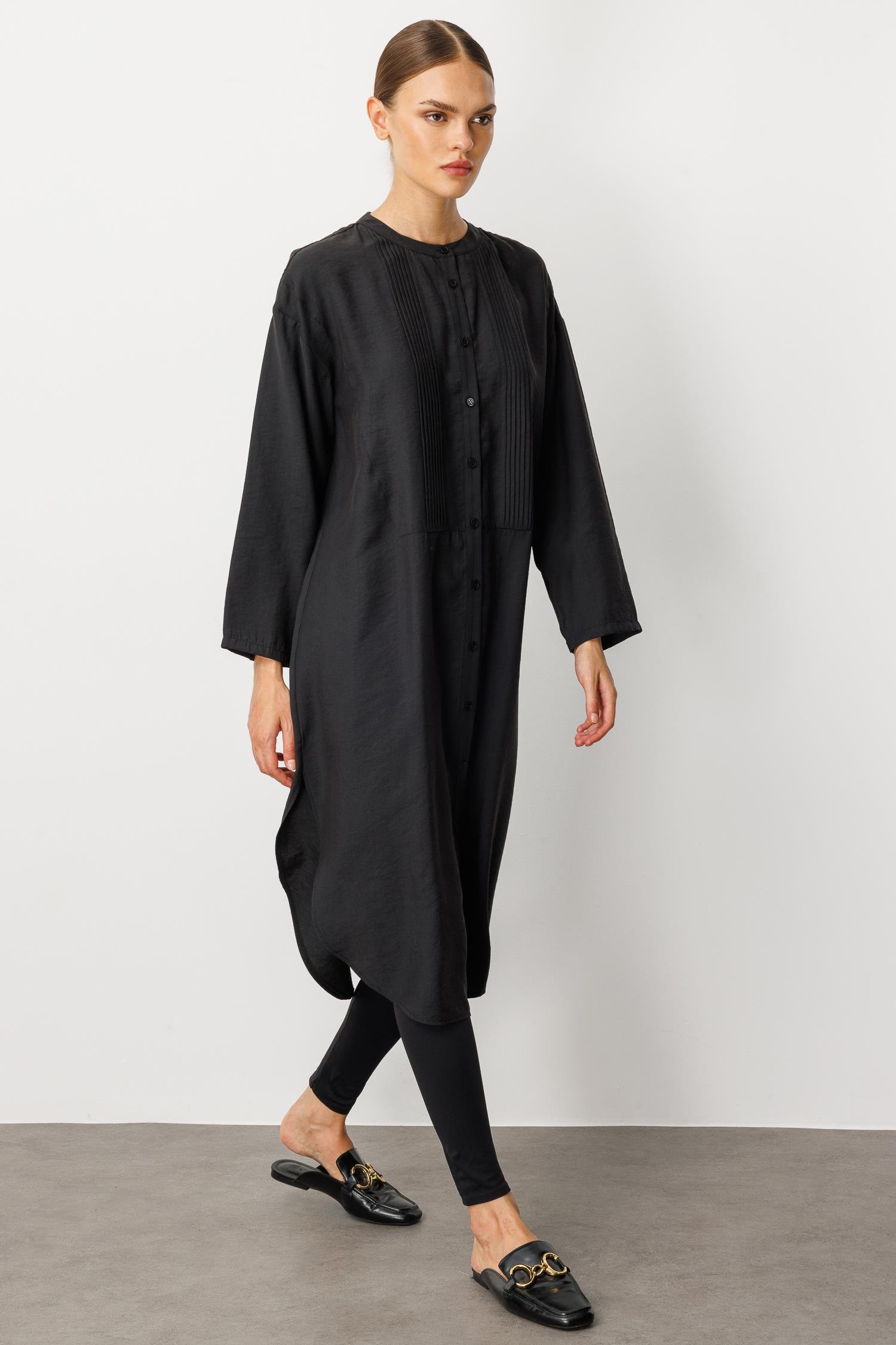 Soft Modal (%90) İçerikli Pili Kırımlı Detay Kap Ferace-Siyah (252540M TUNİK-01)