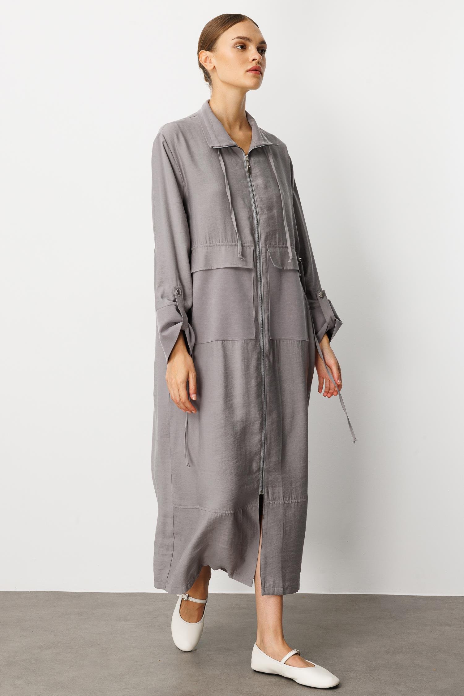 Soft Modal (%90 miccell doğal ) Garni Detay Kap/ Ferace-Gri