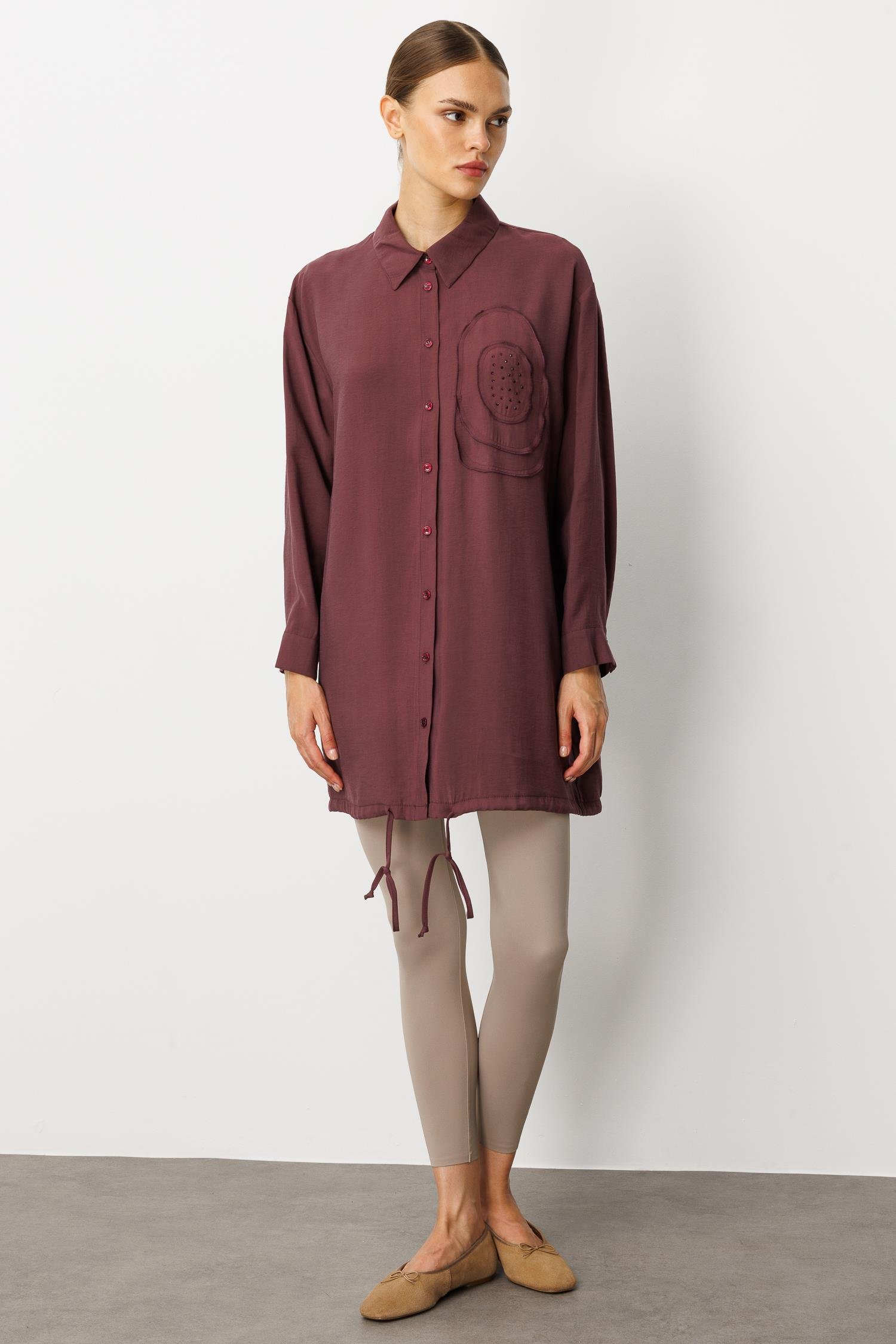 Soft Modal(%90) İçerikli Elişi Çiçek İşlemeli Tunik-Bordo (252569M TUNİK-05)