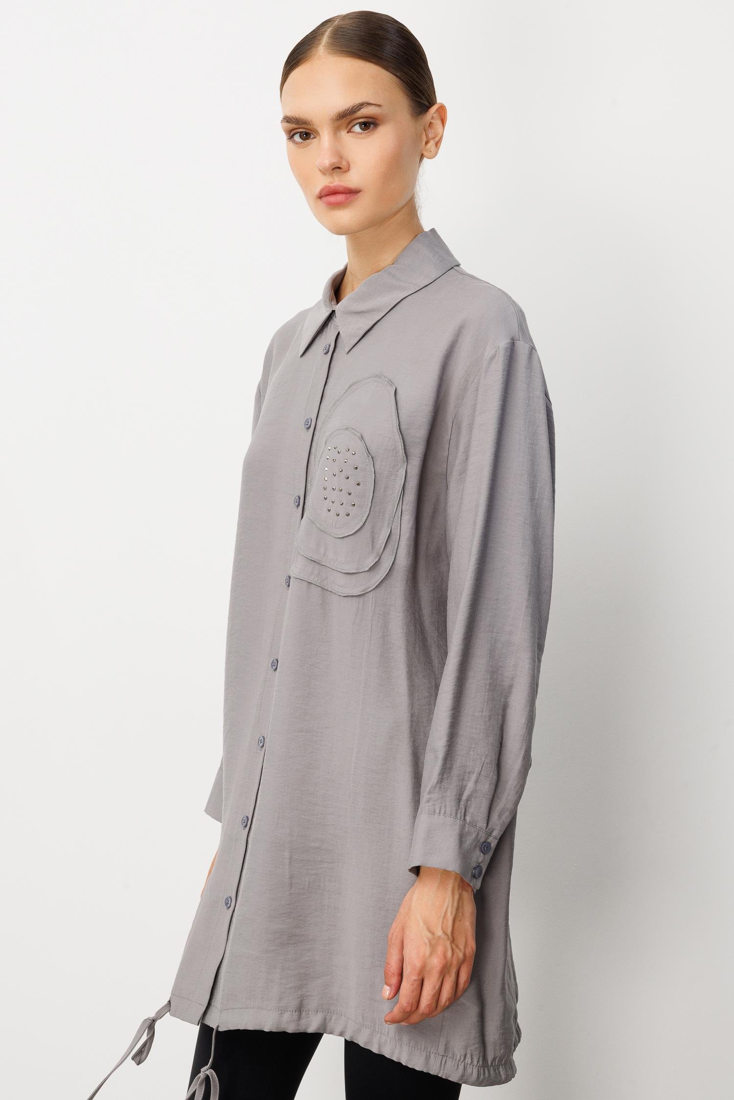 Soft Modal(%90) İçerikli Elişi Çiçek İşlemeli Tunik-Gri