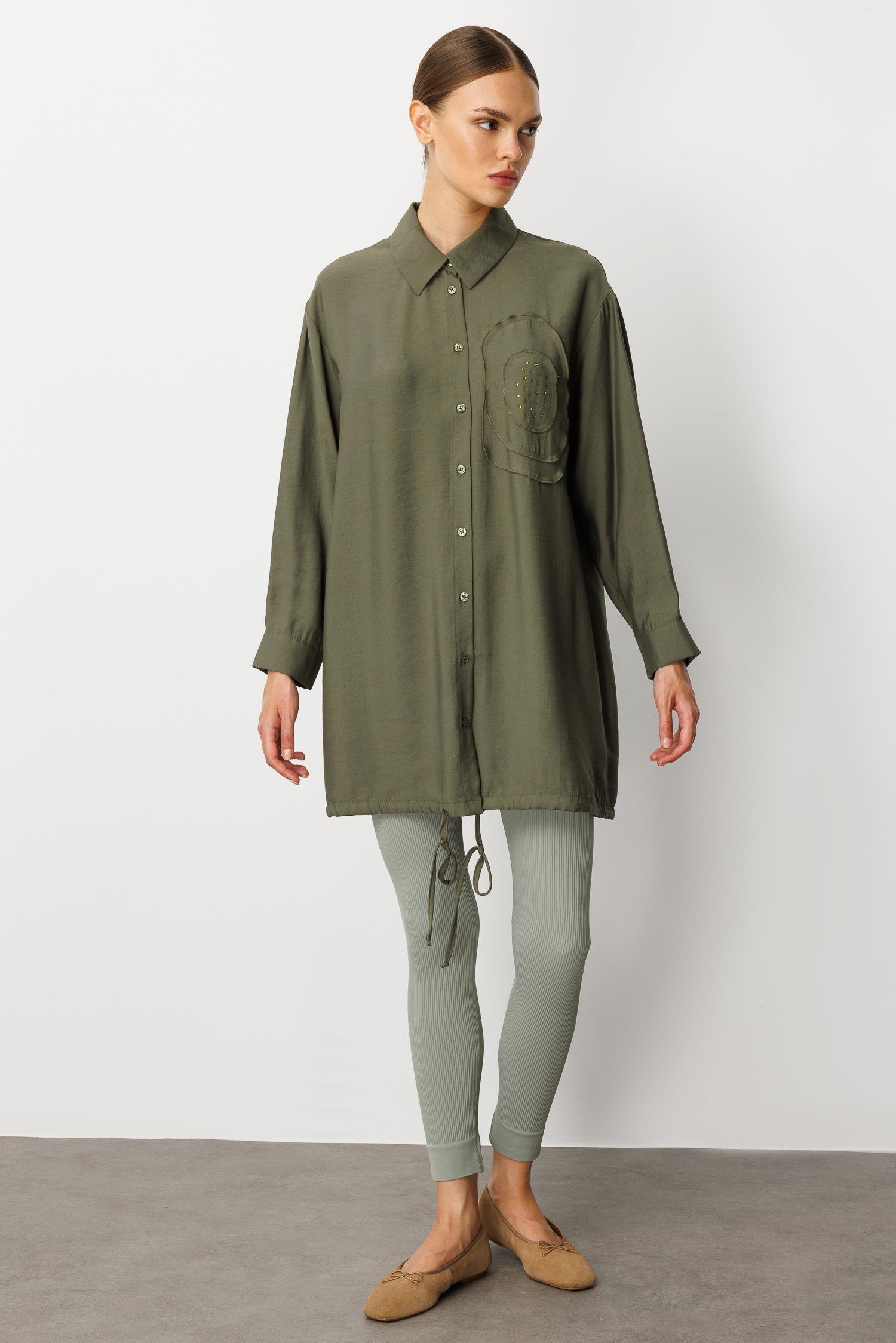 Soft Modal(%90) İçerikli Elişi Çiçek İşlemeli Tunik-Haki (252569M TUNİK-20)