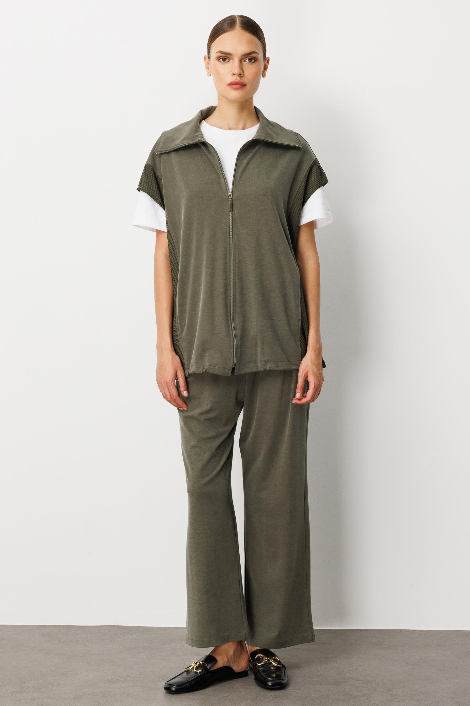 Soft Örme (miccell %55 doğal) İçerikli Yelek (tunik) Pantalon Kombin Takım-Haki (252855M PANTOLONLU KOMBİN-20)