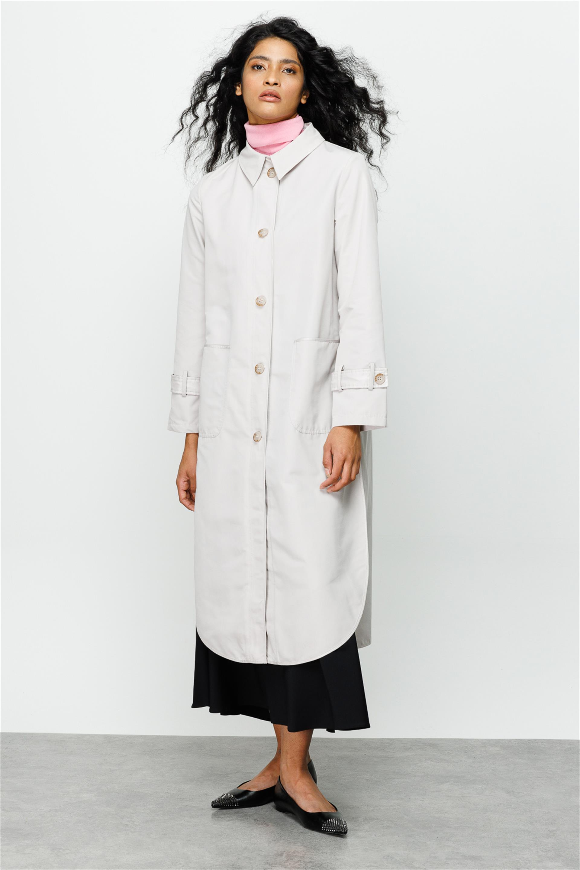 Soft Trench Kumaş Baharlık Spor Zamansız Trench kap-Gümüş (231504M BİYELİ KAP-79)