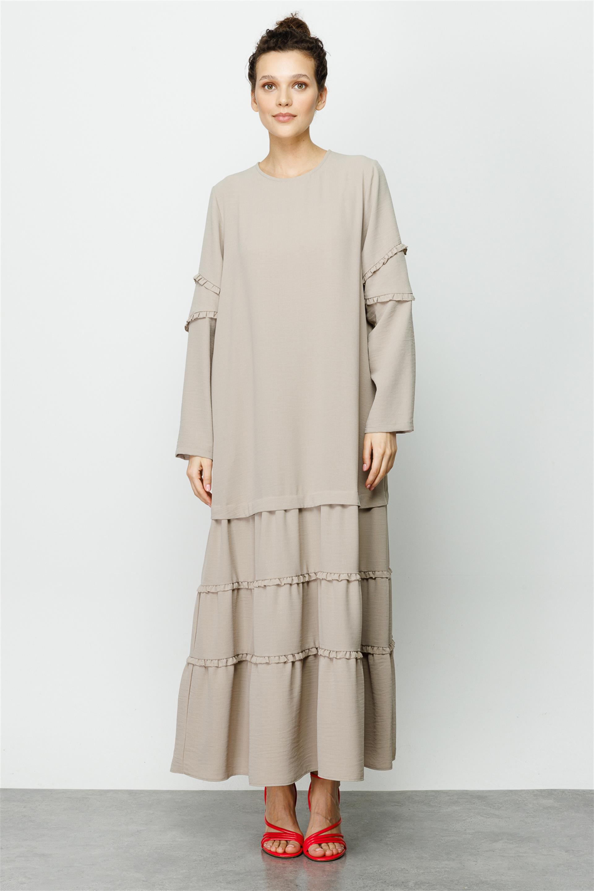 Spanje Zor Kırışan Nefes Alan Kumaş Zamansız Elbise-Taş (231335M SPANJ ELBİSE-12)