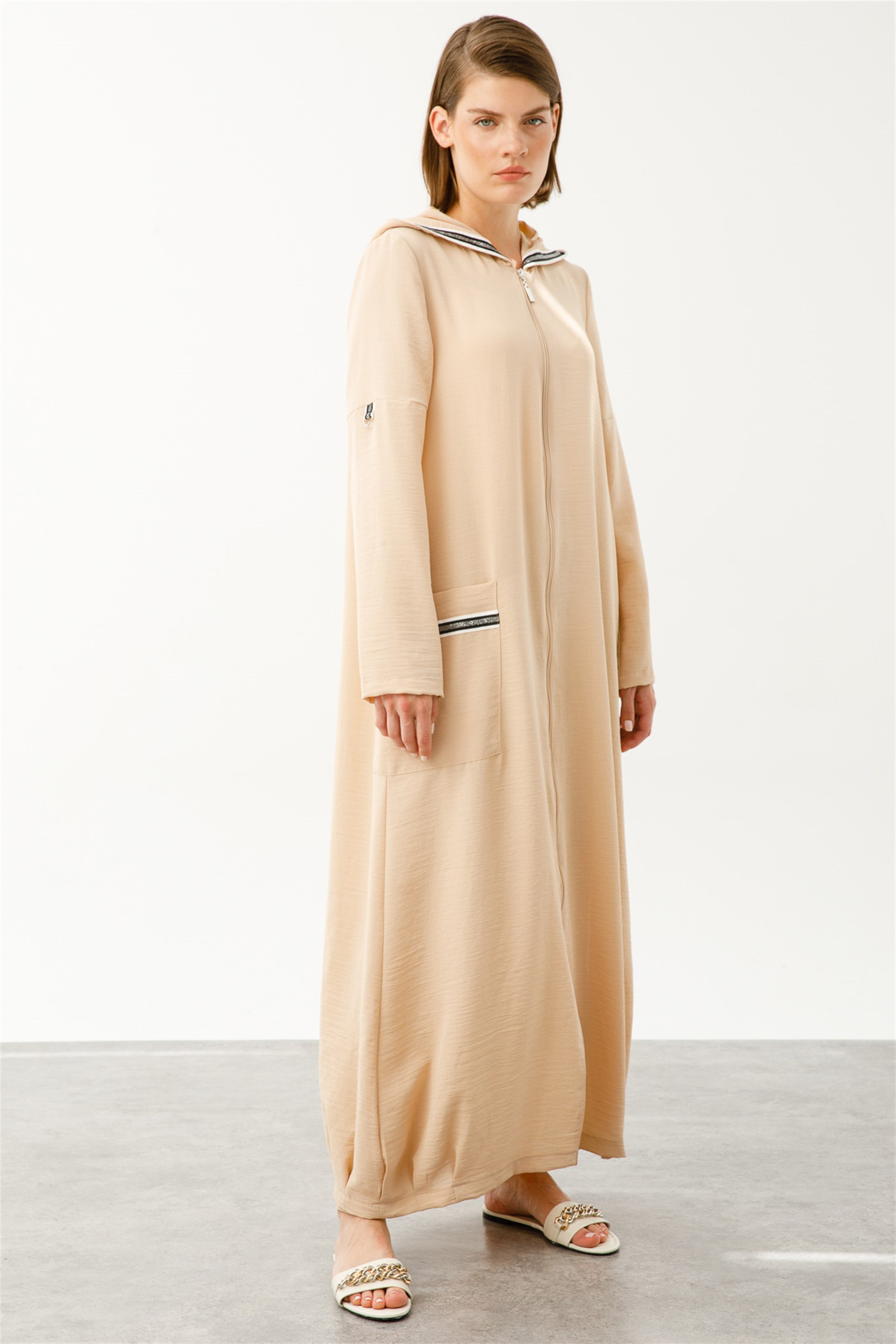 Spor Çizgilere Sahip Tam Boy Spor Kap Üretim Ülkesi: Türkiye Sezon: 2022 İlkbahar Yaz Kumaş İçeriği: %100 Polyester Boy Uzunluğu: 136 cm Ürün Ölçüleri 38 Beden için: Göğüs 102 cm, Bel 106 cm, Basen 119 cm Bedenler arası 4 cm fark etmektedir. Manken Ölçüleri Giydiği Beden: 36 Boy: 175 cm Göğüs: 75 cm , Bel: 60 cm , Basen: 88 cm