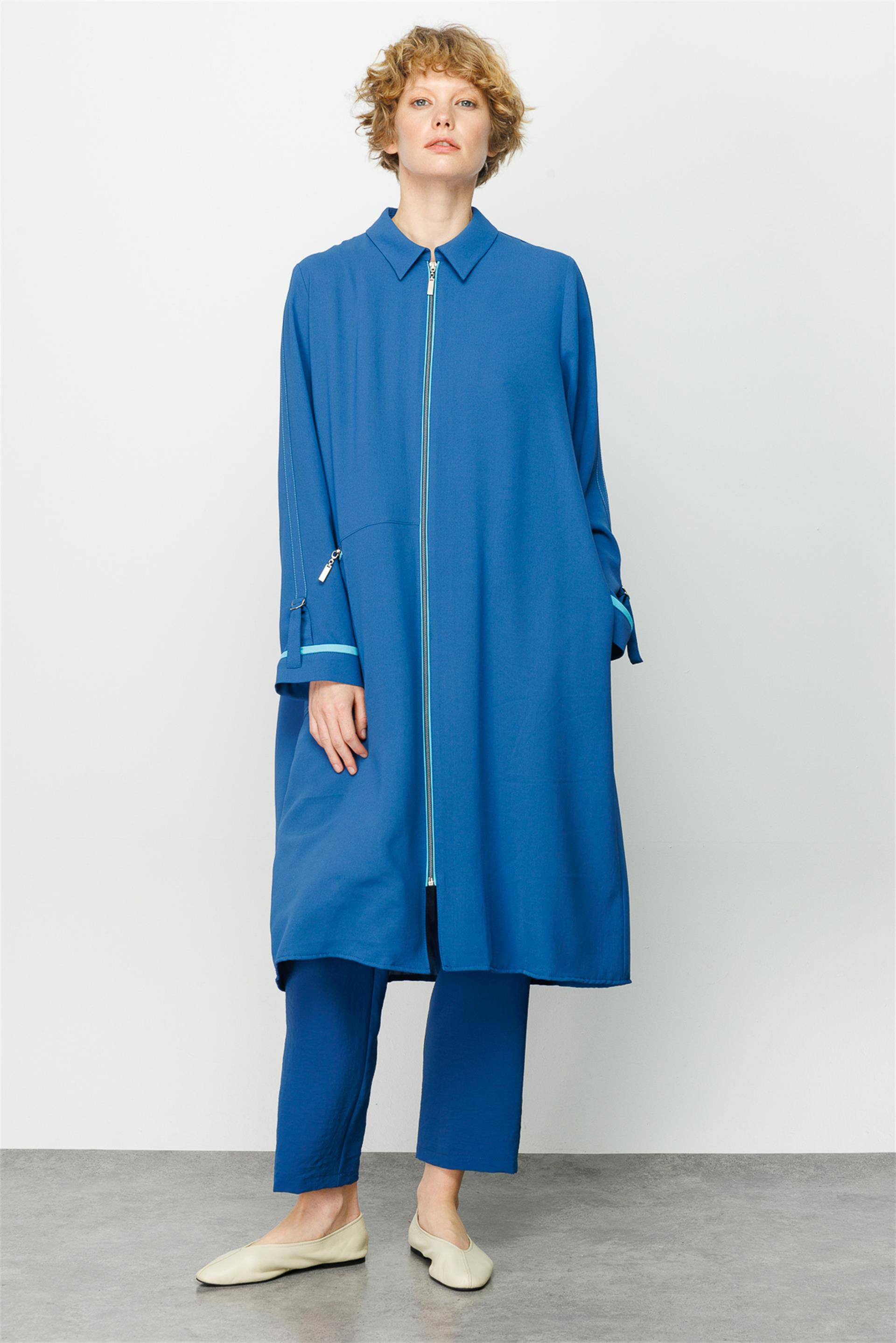 Spor Garni Detaylı Nefes Alan Zor Kırışan Kumaş Kap-İndigo (231886M KAP-44)