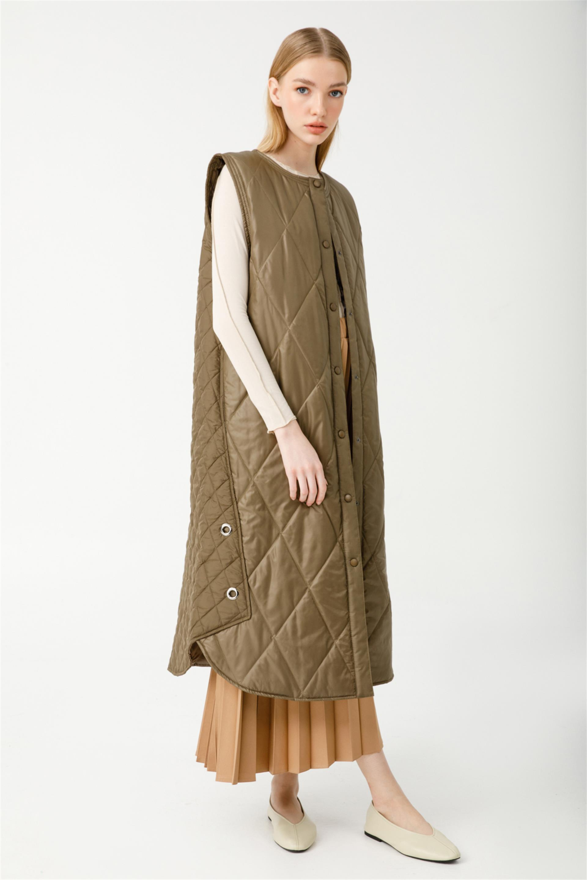Spor İki Farklı Desenli Kapitone Yelek-Haki