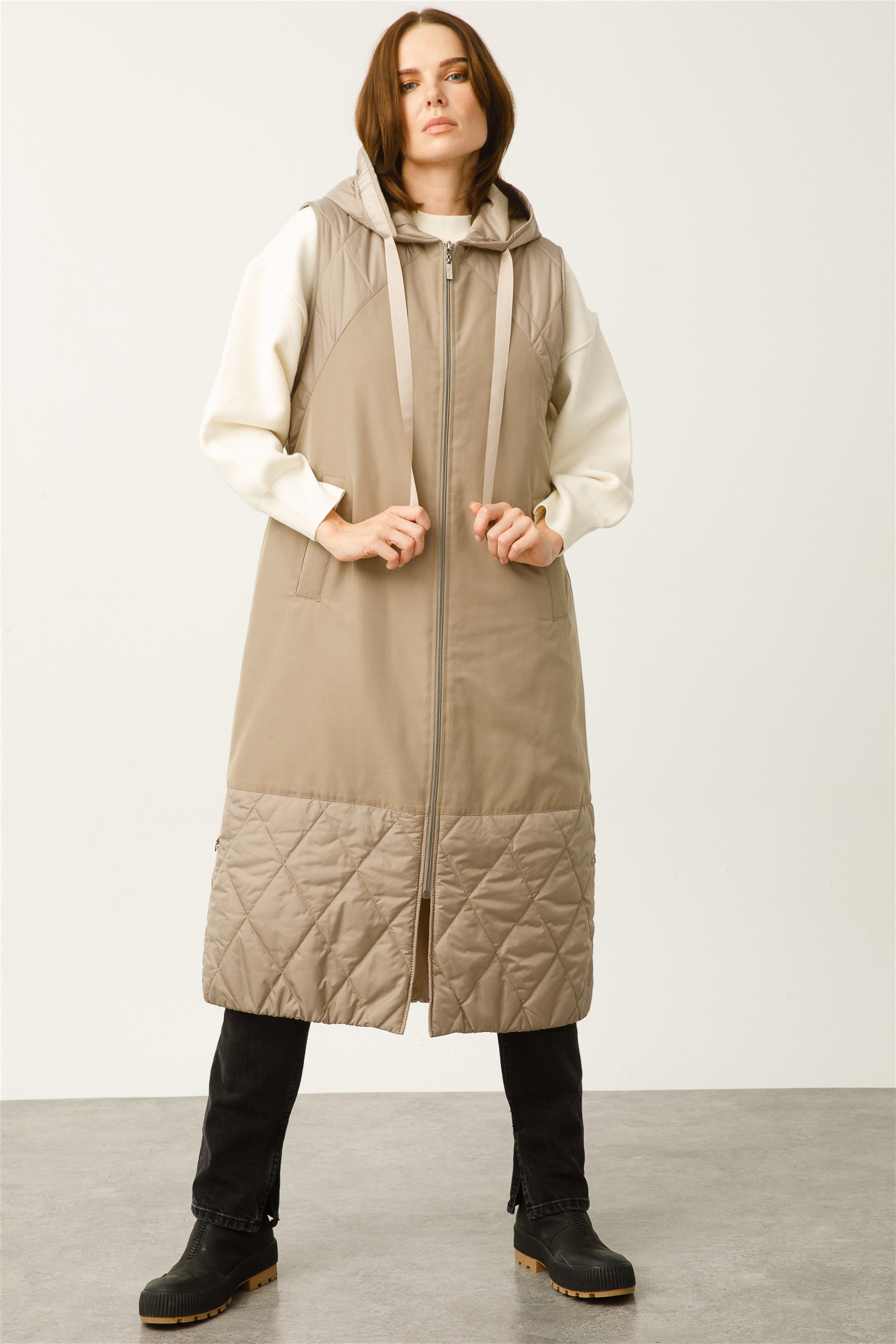 Spor ve Zamansız Helene Garni Uzun Yelek-Taş (222708M YELEK-12)