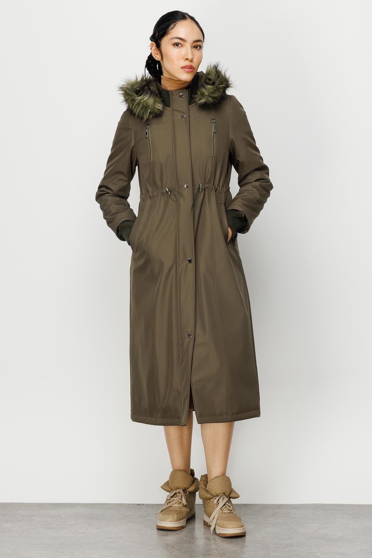 Spor ve Zamansız Tüm Bedeni Kapitone Dolgu Astarlı Kürklü Manto Kaban-Haki (232549M KABAN-20)