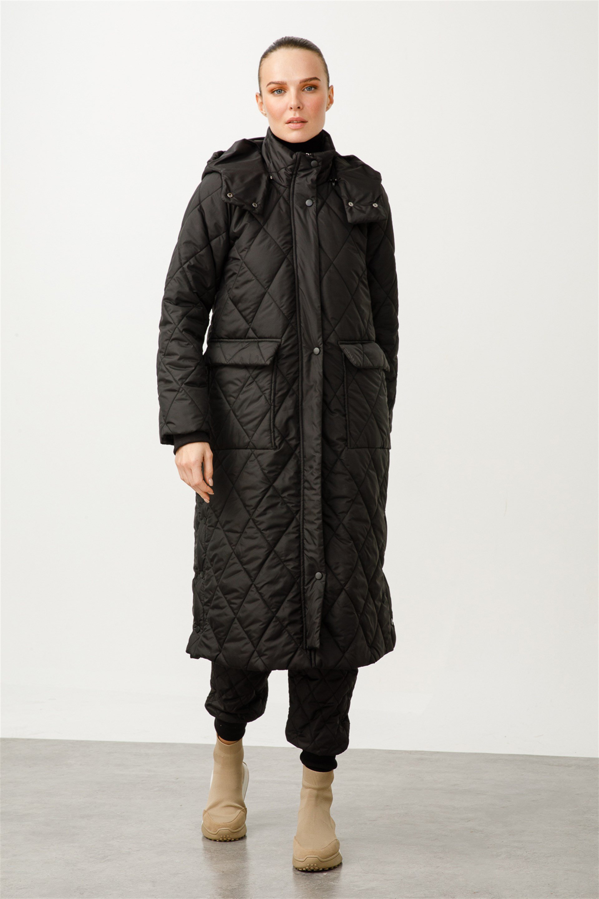 Spor ve Zamansız Yanları Çıtçıt Yırtmaçlı Spor Manto-Siyah (222535M KABAN-01)