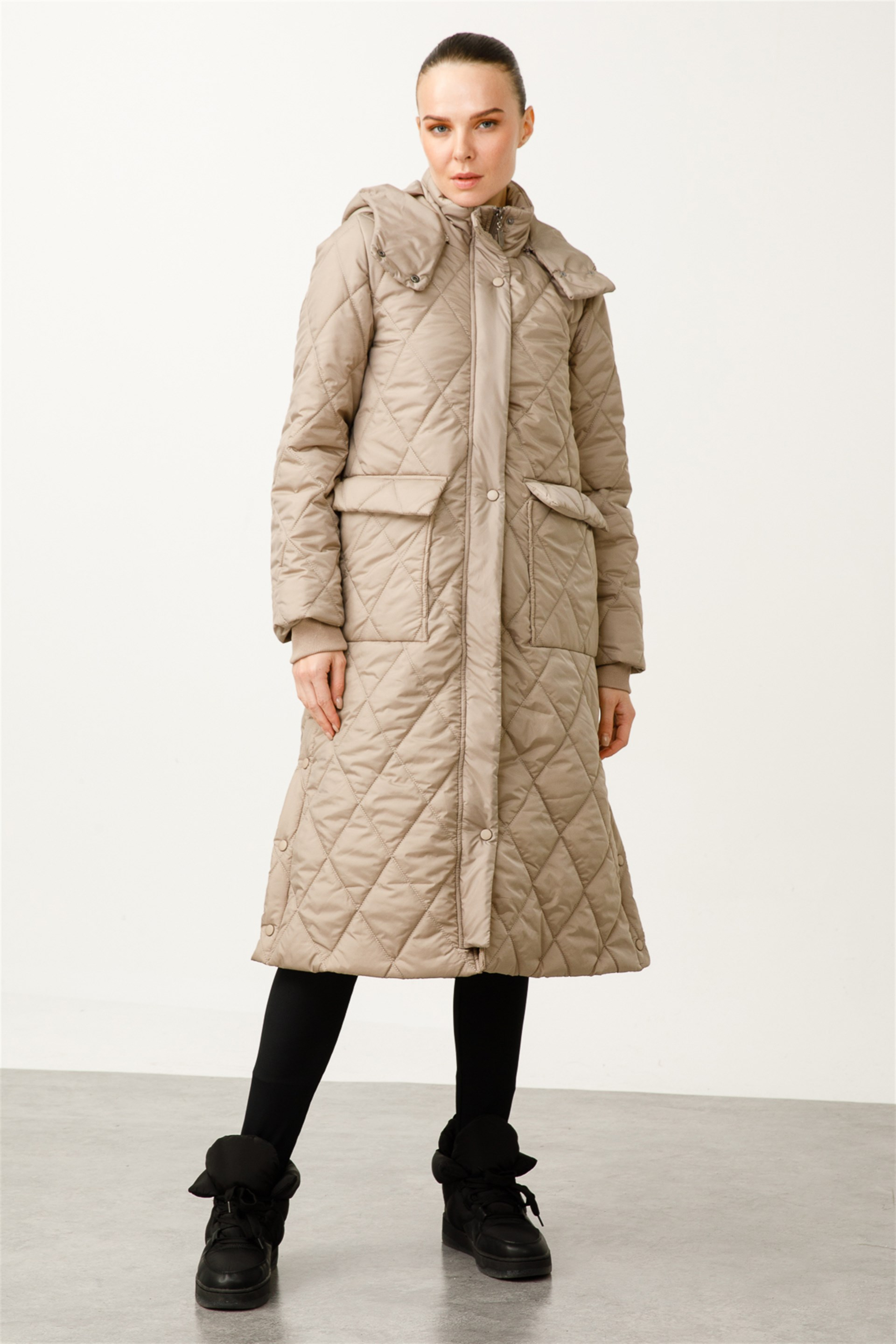 Spor ve Zamansız Yanları Çıtçıt Yırtmaçlı Spor Manto-Taş