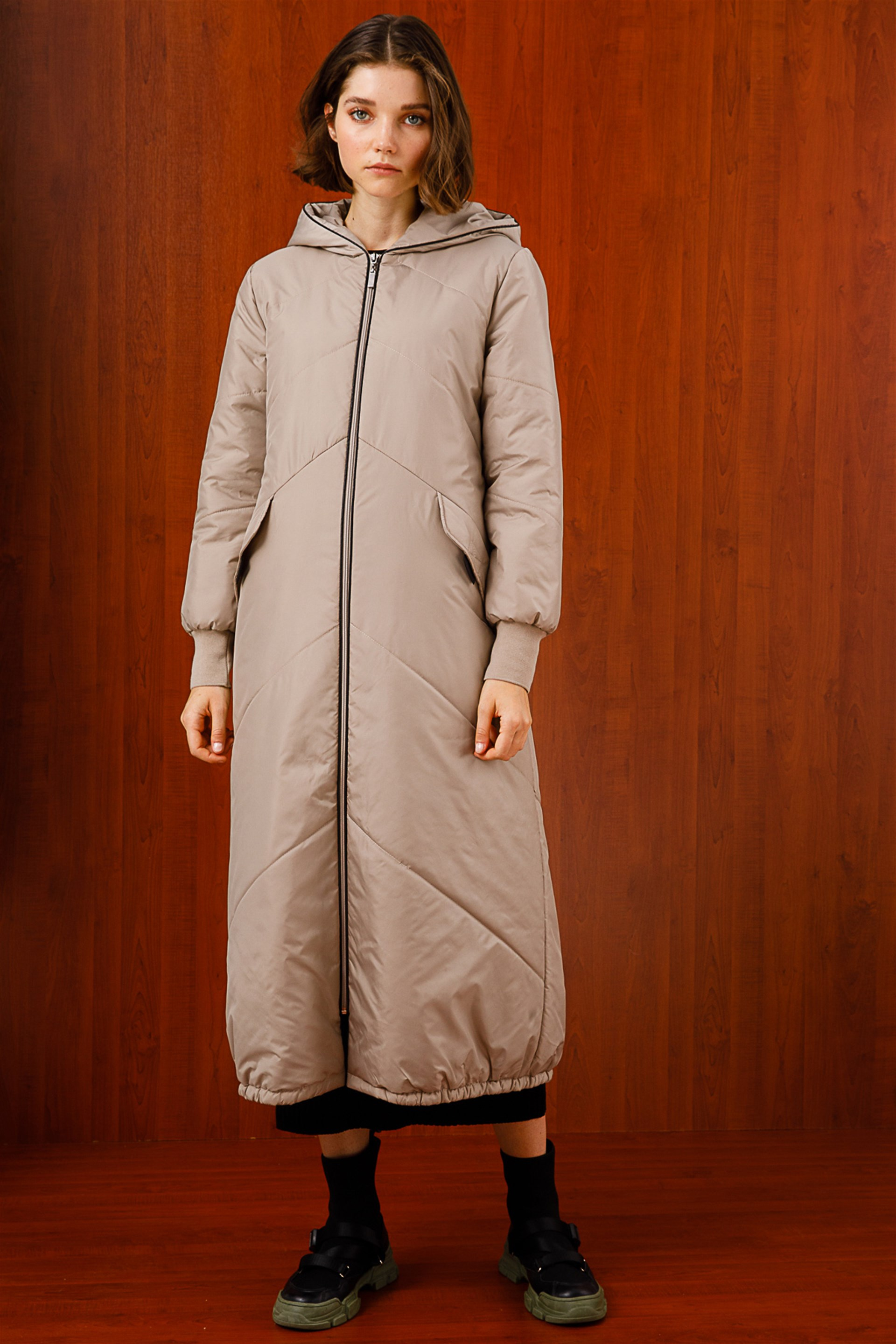 Sportif Biye Detaylı Dokuma Şişme Tam Boy Manto-Taş (212537M KABAN-12)