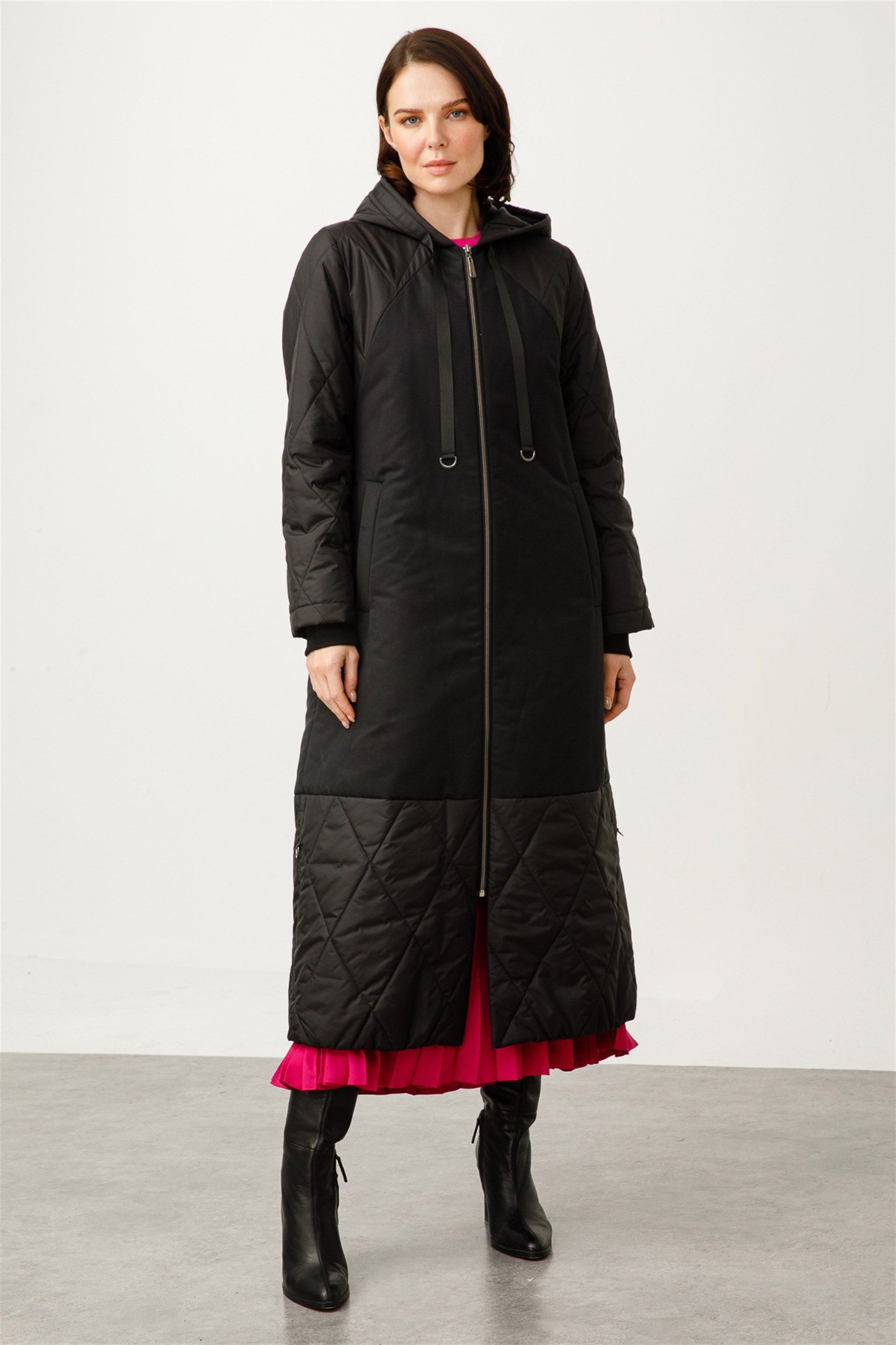 Star Kapitone Dolgulu Helene Garnili Spor Manto-Siyah (222597M KABAN-01)