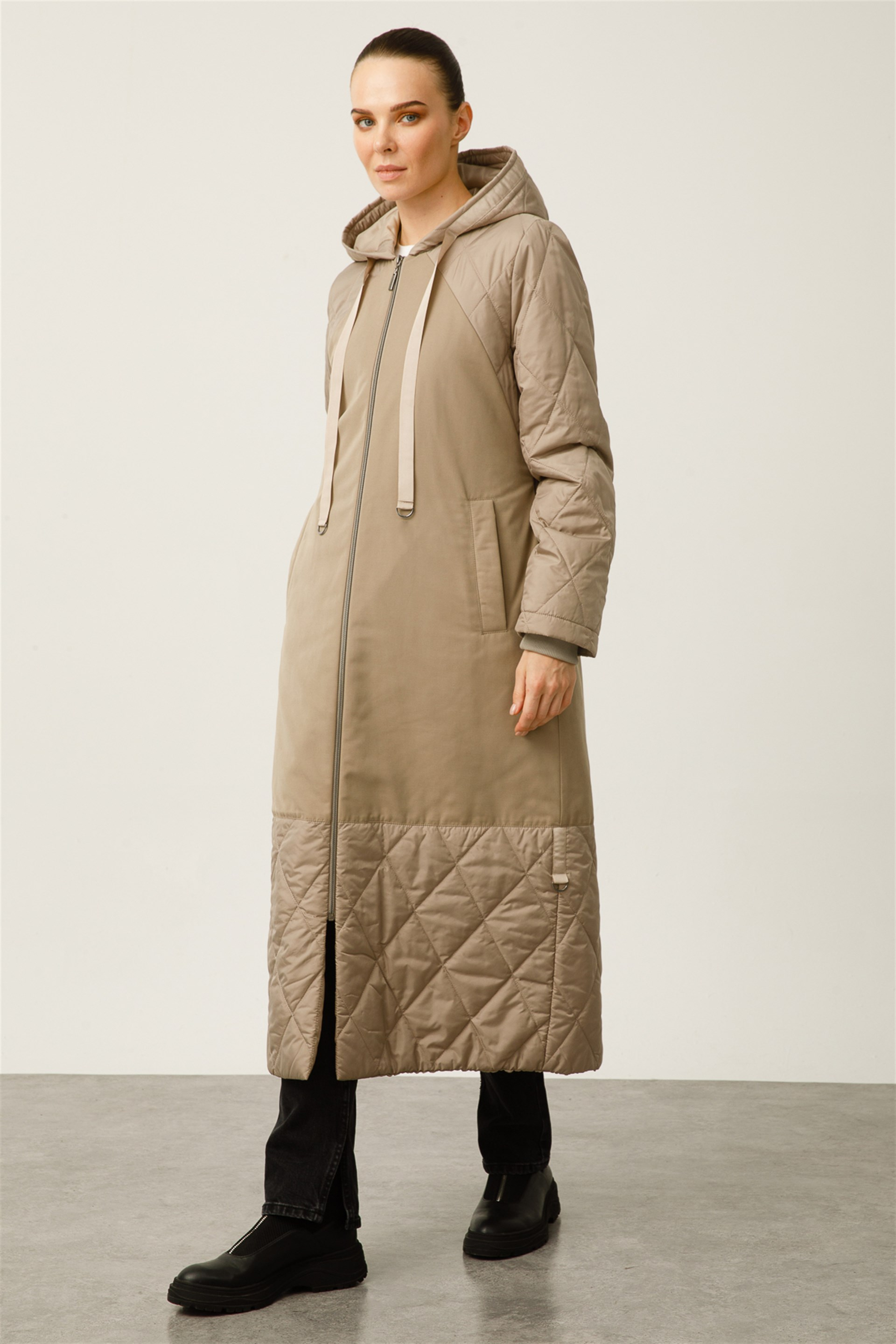 Star Kapitone Dolgulu Helene Garnili Spor Manto-Taş (222597M KABAN-12)