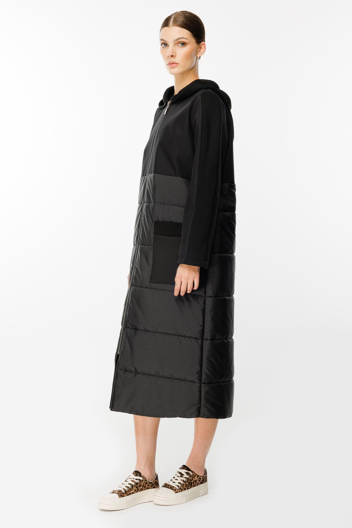 Su İtici Triko Yaka ve Kol Detaylı Kapüşonlu Kapitone Fermuarlı Mont-Siyah (242122N-01)