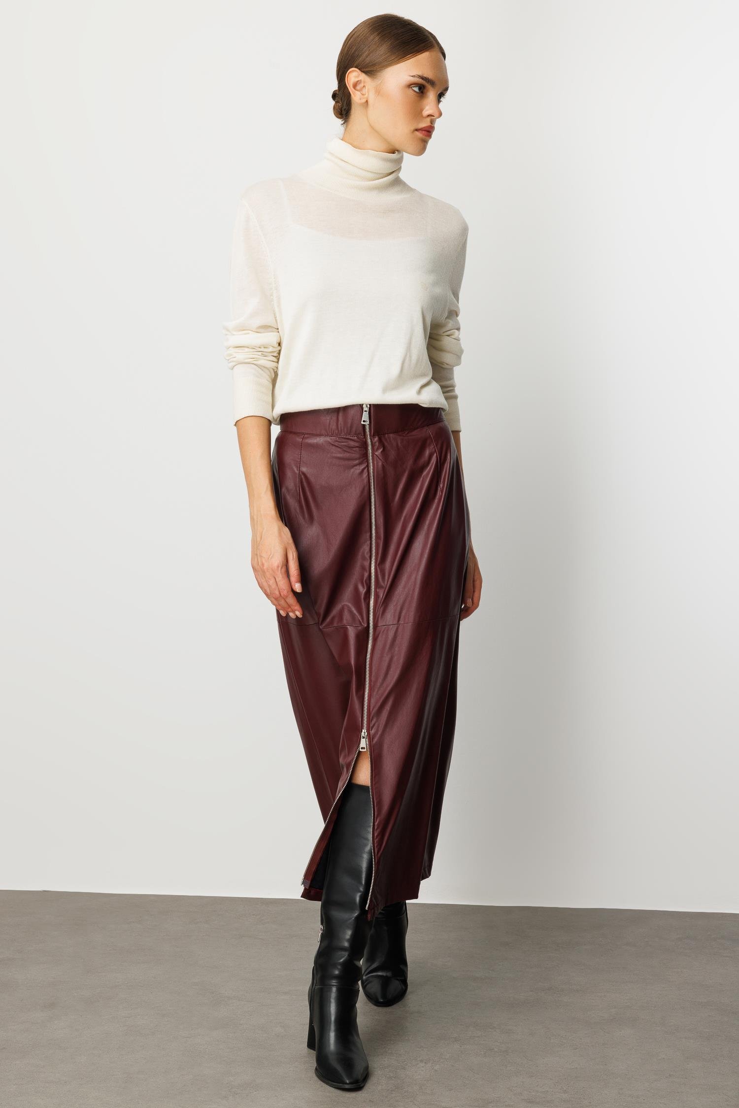 Suni Deri Zamansız Etek-Bordo (242206M ETEK-05)
